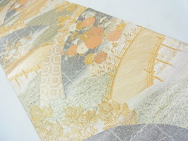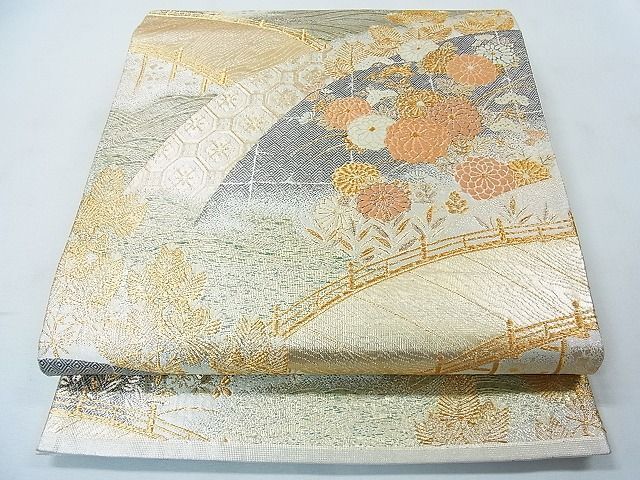 商品名稱 : 平和屋着物◎九百佐賀錦 六通柄袋帯 渡り橋花文 金銀糸 逸品 CAAB1366in