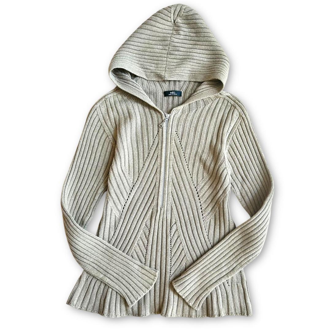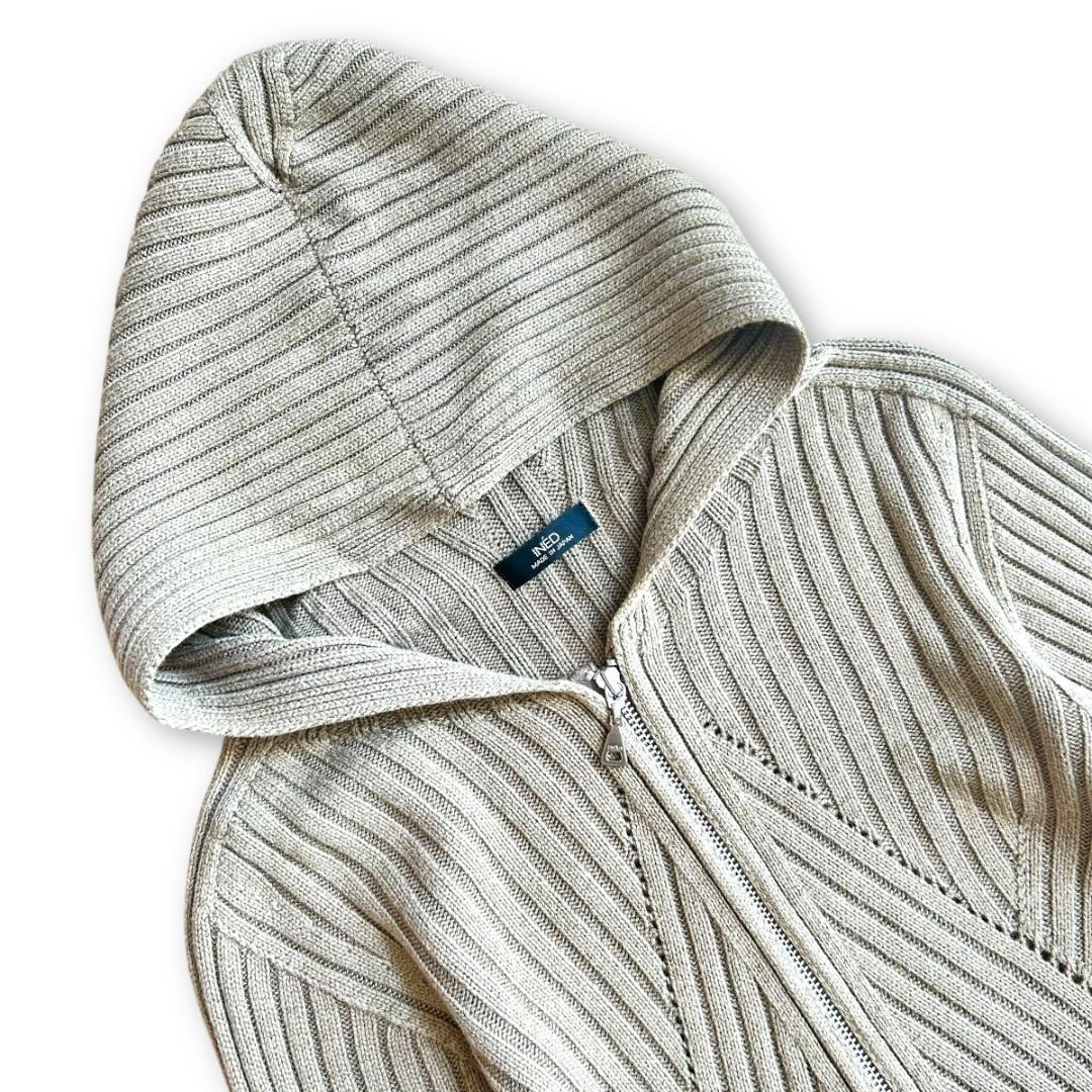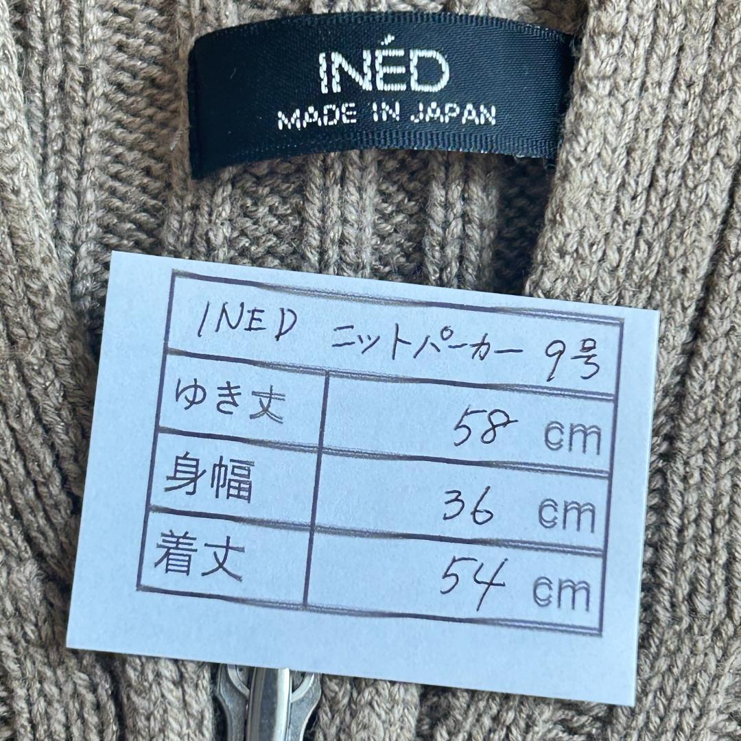 【美シルエット】INED ニットパーカー フーディー 日本製 9号 ベージュ系