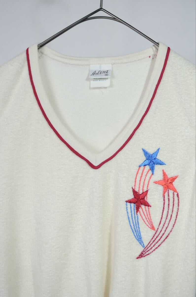 商品に興味をもっていただき、ありがとうございます。 以下お読みいただき、入札をお待ちしています。 【素材】 コットン75% ポリエステル25% 【表記サイズ】 M 【実寸サイズ】 ☆トップス 肩幅35 身幅45 着丈52 袖丈 ☆パンツ 全長 ウエスト もも幅 股上 股下 【コンディション】 C パイピング脇ほつれあります 【注意事項】 ○低価格での出品の為、ノークレーム、ノーリターンでお願い致します。 ○商品の状態は写真とコンディションランキングを合わせてのご確認よろしくお願い致します。 ○小さな汚れ等、写真で撮りきれない事もあります。 ○お取引後の破損、劣化等に関しましては一切補償、返金等致し兼ねます。 ○落札後1週間以内にご連絡頂けない場合、ブラックリスト登録及び今後のオークション参加は不可とさせて頂きます ○悪い評価の割合が多い方は、いたずら入札防止の措置として入札取り消しをさせていただく場合がございます。 ○送料は一律¥800、離島の場合は¥1,200と致します。 ○複数ご購入の方、送料は同一梱包で、何点でも一口分の800円のみとなります。 (沖縄・北海道・離島は1,200円) 不明点はご質問ください。よろしくお願いします。 コンディション S未使用品・デッドストック未使用状態 Aわずかな着用感わずかな擦れや汚れ B通常の古着程度の使用感通常の古着程度の擦れ、汚れ、傷 C着込まれた状態の古着傷や汚れがある Dとても着込まれた状態の古着多くの傷や汚れがみられる >