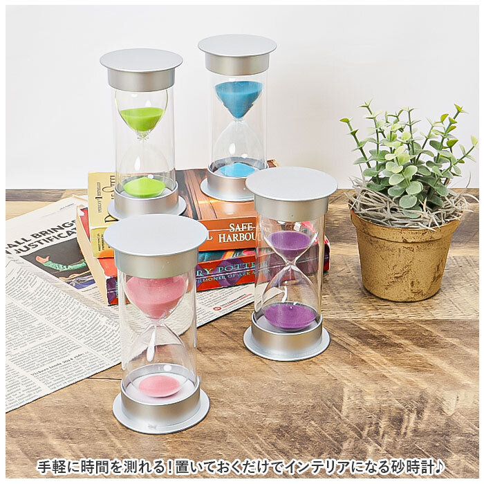 | 商品説明 | ・・手軽に時間を測れる!置いておくだけでインテリアになる砂時計♪ ・【ひっくり返すだけで簡単】 ・スマホやキッチンタイマーなどのデジタル機器と違って、時間を測りたい時に上下にひっくり返すだけ!いざという時にも便利な、設定不要のアナログ構造。 ・【シーンに合わせて使える6タイプ】 ・・3分・5分・10分・15分・20分・30分の6タイプをラインナップ!用途に応じて使い分けできるのが嬉しい◎(※製品の特性上、時間は目安となります。) ・【シンプルなデザイン】 ・シルバーの台座に、キレイに色づけた砂がアクセント。どんなテイストのお部屋にも素敵にマッチ。 ・【リラックスタイムのお供に】 ・ぼーっと眺めているだけで、ゆったりとした時間を感じさせてくれる!忙しい毎日の中に癒やしの時間を♪ ・【知育道具としても活躍】 ・歯磨きや朝の準備、ゲーム時間・・・。お子さまが時間の感覚を身につけるトレーニングにもおすすめ! |