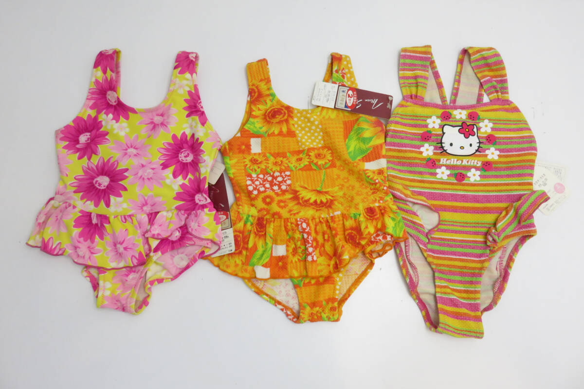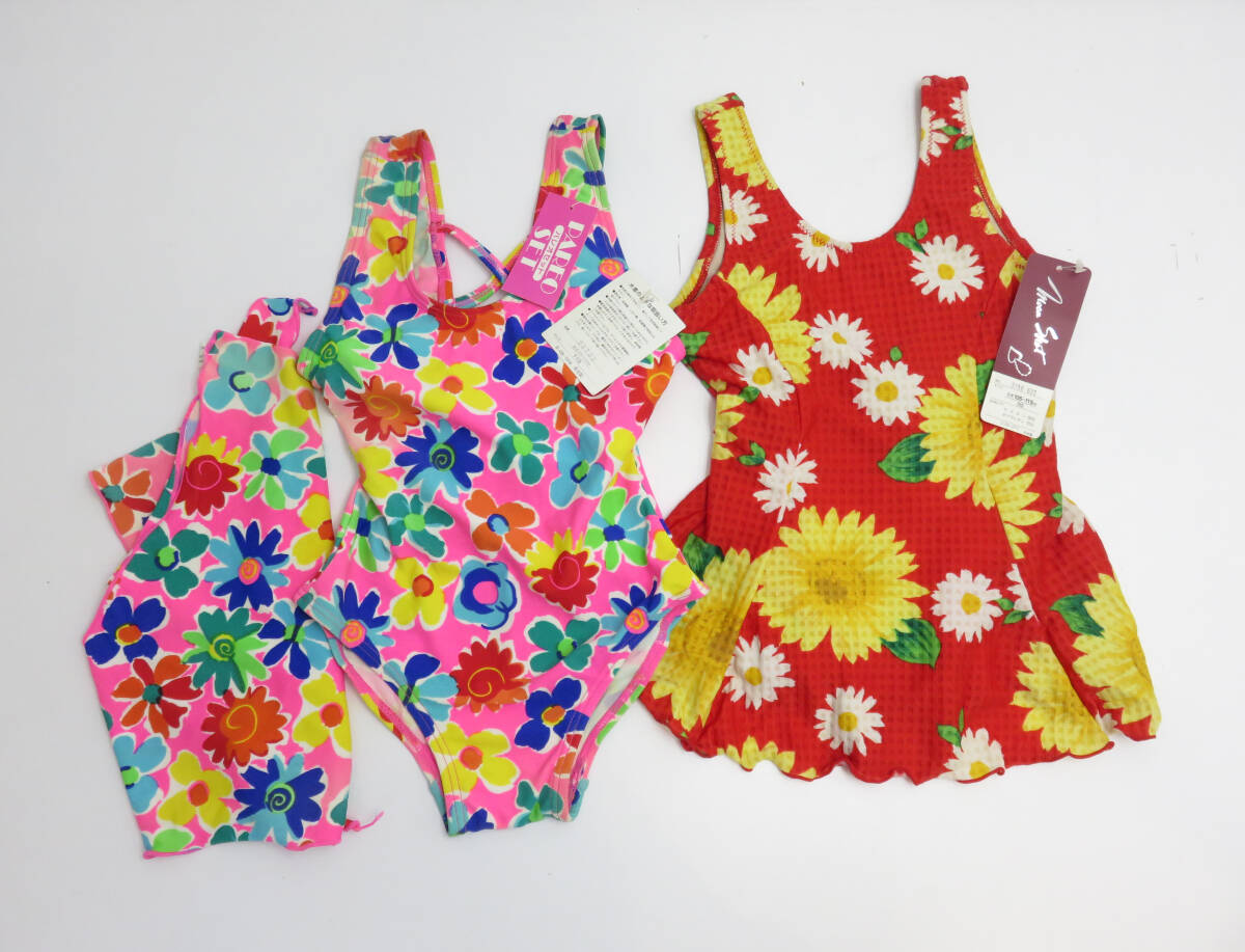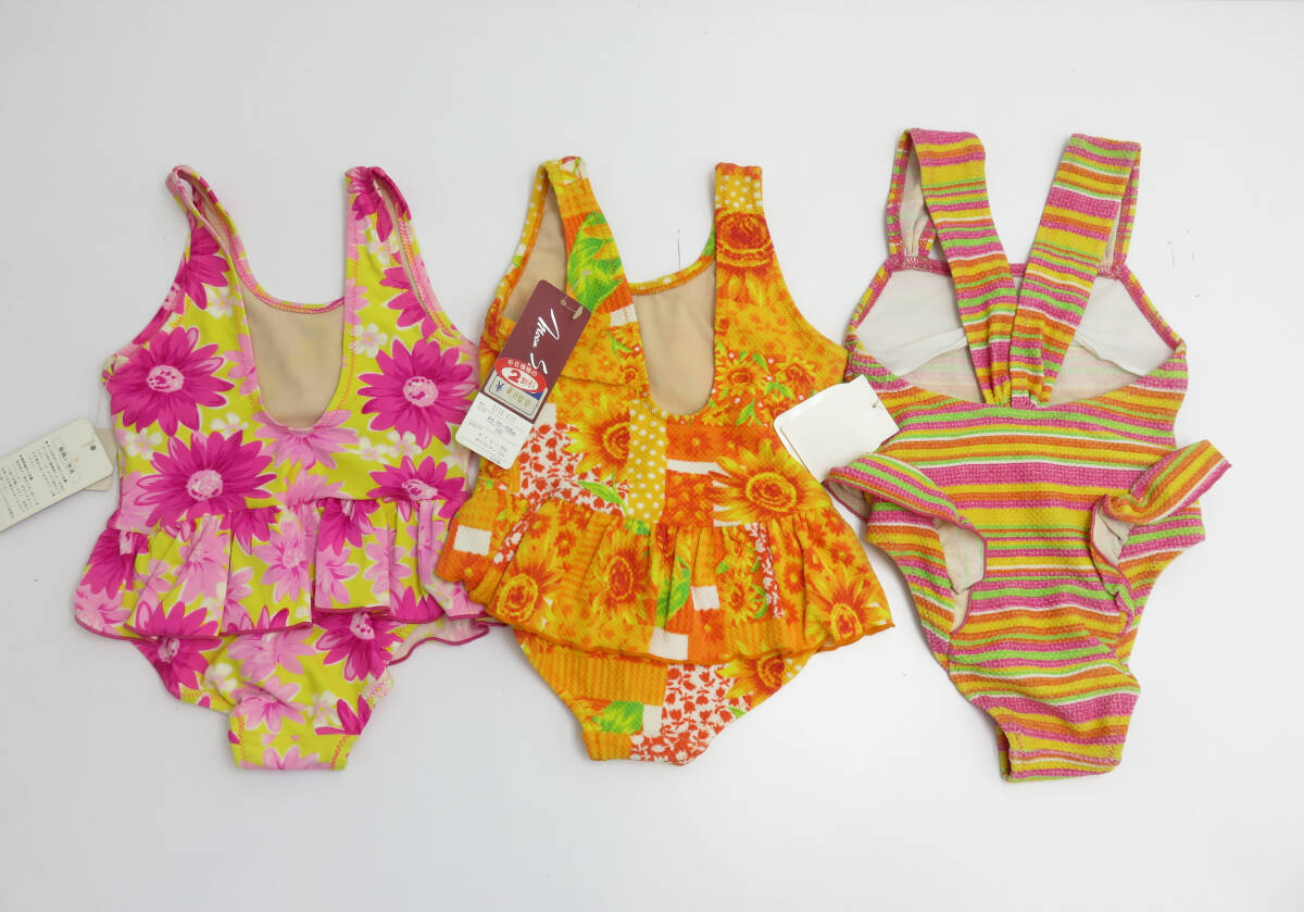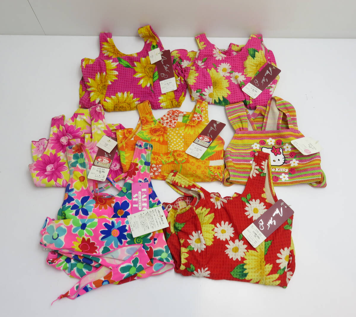 ☆保管・未使用品☆女の子水着まとめ 7枚まとめ 100×5枚 110×2枚 ワンピース 女児 花柄 キティちゃん 昭和レトロ