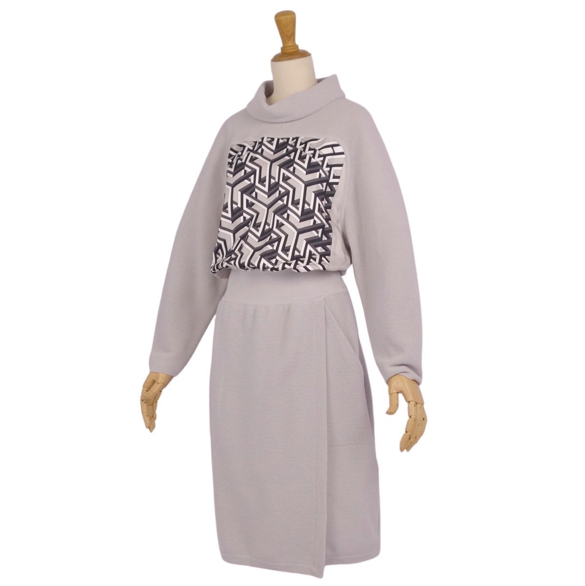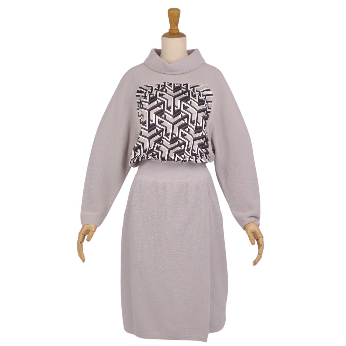 | 美品 エルメス HERMES ワンピース ロングスリーブ 長袖 ニット シルク切り替え レディース イタリア製 40(M相当) グレー |