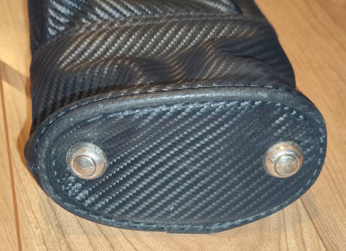| 松勘工業【冠KENDO竹刀ケース】黒USED ・ご観覧いただきありがとうございます使用機会無く出品です ・松勘製冠KENDO竹刀ケース黒 SF-700K ※以下カタログ説明より ・サイズ、L124*W16*H8(容量約15L) ・ボトム部分のポケットには竹刀手入れ道具等収納出来ます ・内側ポケット付16*11cm ・竹刀4本又は竹刀3本+木刀1本収納出来ます ~~~~~~~~~~~~~~~~~~~~~~~~ ・5年ほど前に購入しましたが使用機会が無くなり出品します ・生地(テクノレザー)表面もダメージは少なく良い状態です ・底部分もスタッドもダメージが無く良い状態です ・ネームホルダー外周に少しほころびが有ります ・やはり松勘製で使いやすくしっかりしています |