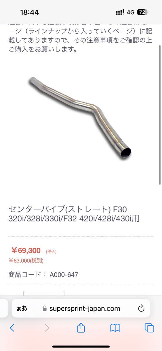 BMW F30 F32 320i 328i 420i 428i N20エンジン センターマフラー リアピース フルストレートマフラー スーパースプリント