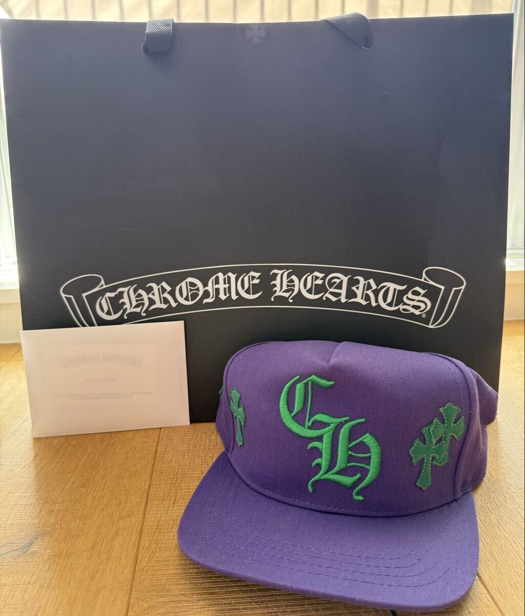 新品 未使用 CHROME HEARTS クロムハーツ クロスパッチ キャップ 帽子 5PANELメンズ CH 刺繍ロゴ 9パッチ レザー 直営店購入 証明書付き