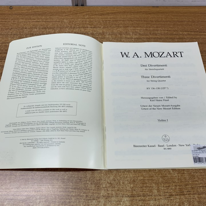 | 商品名稱 : | ▲01)【1点限り!】Mozart/Three Divertimenti/Baerenreiter/モーツァルト/3つのディヴェルティメント/音楽/楽譜/弦楽三重奏/A |