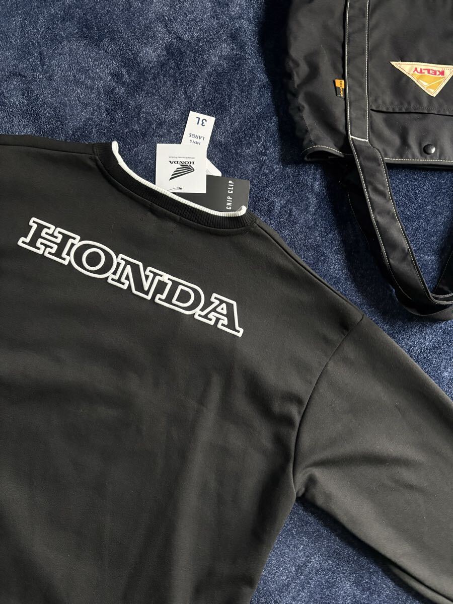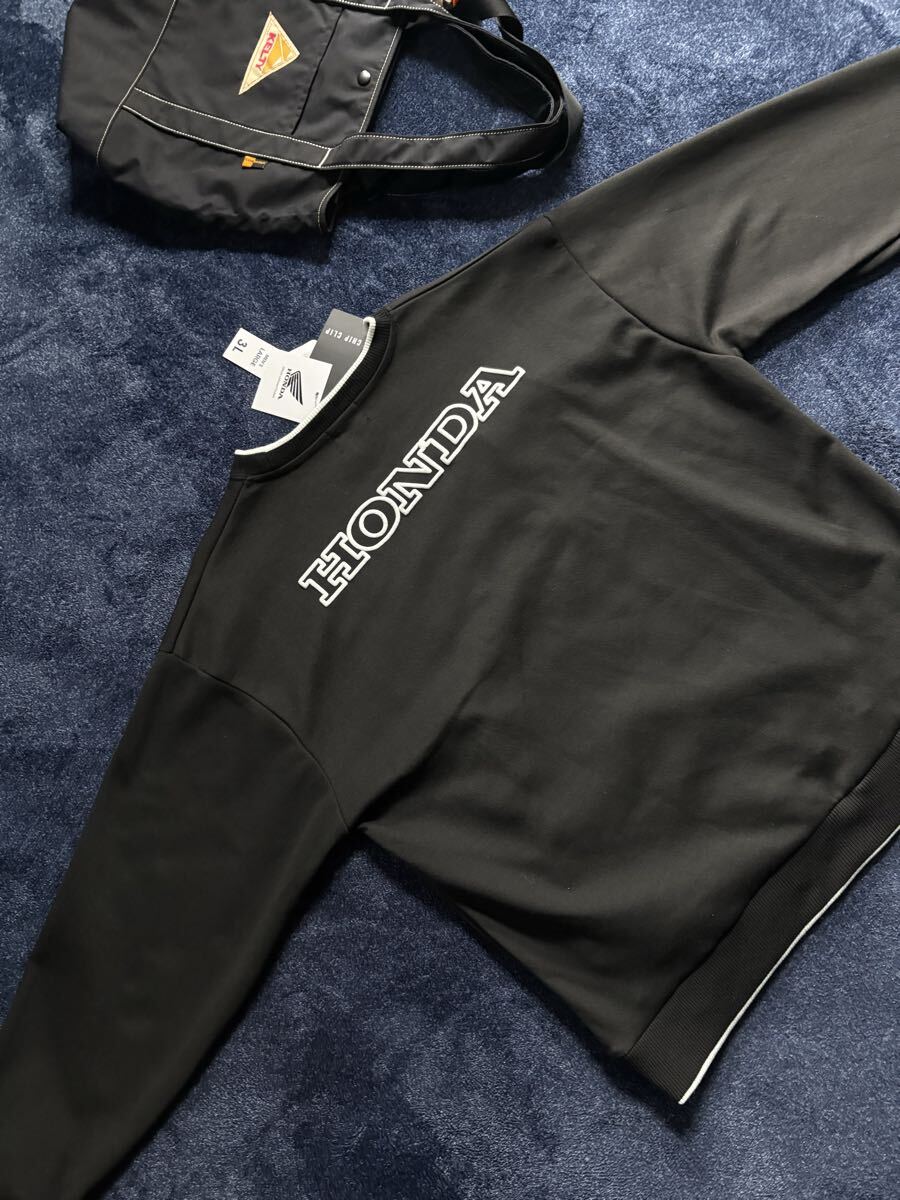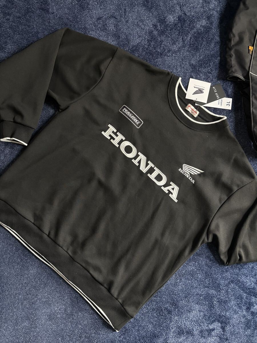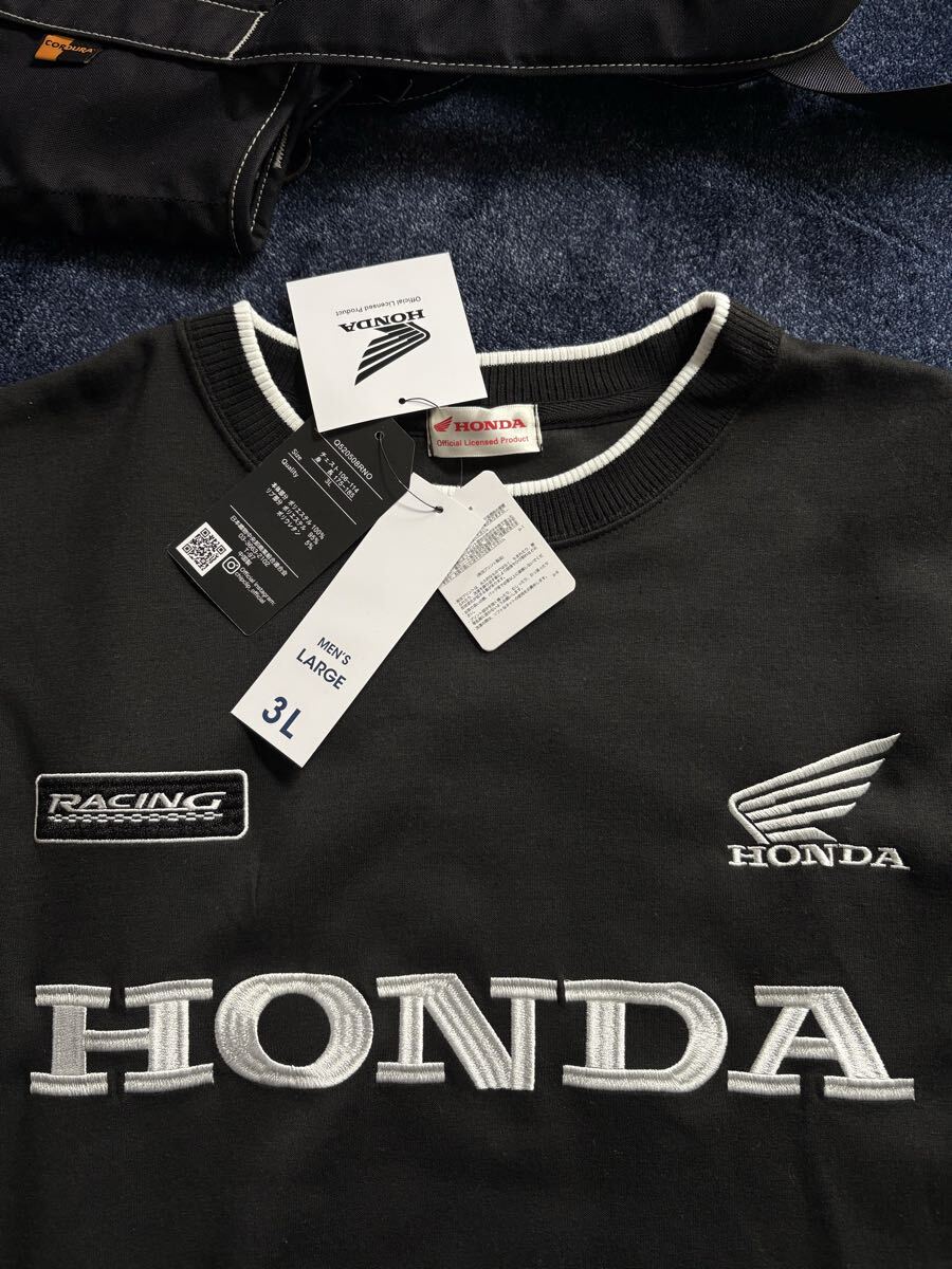 新品 HONDA ホンダ 豪華立体BIGロゴ刺繍 ホンダ クルーネック スウェット 長袖 ブラック size3L HONDA Official Licensed Product