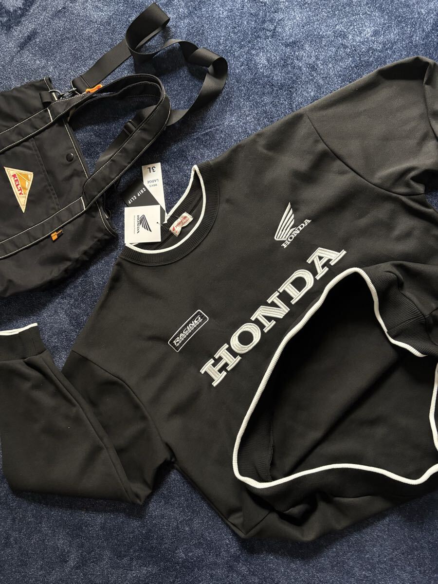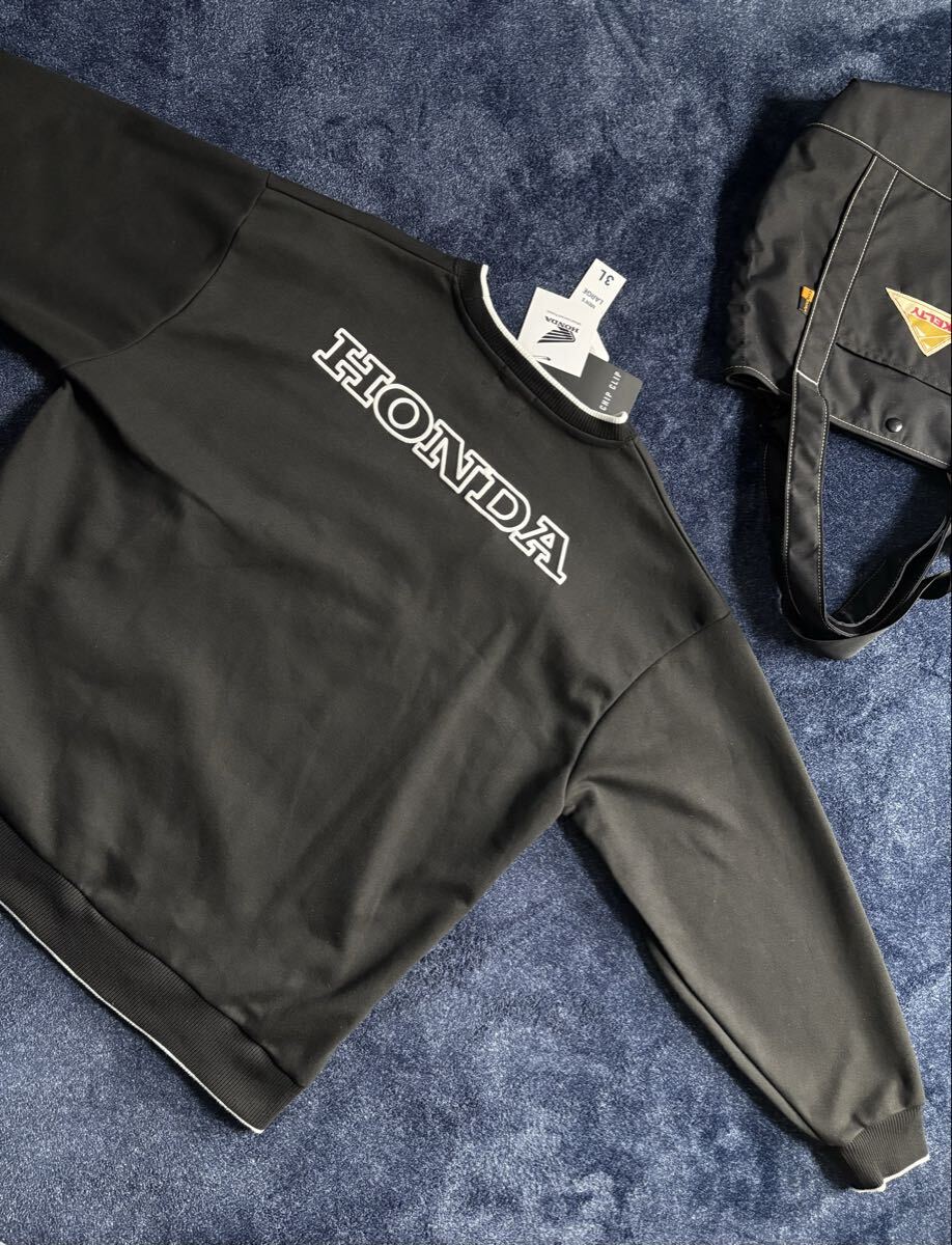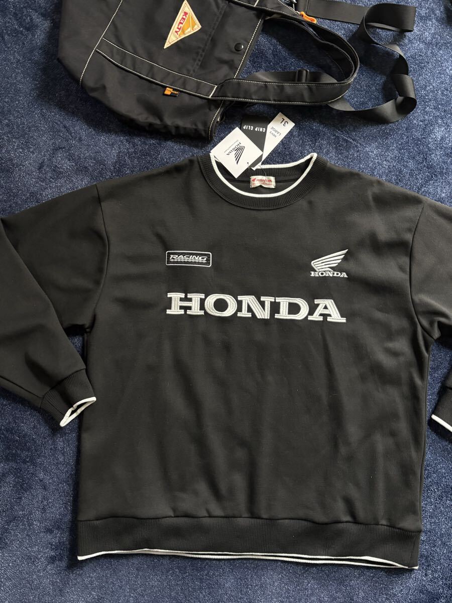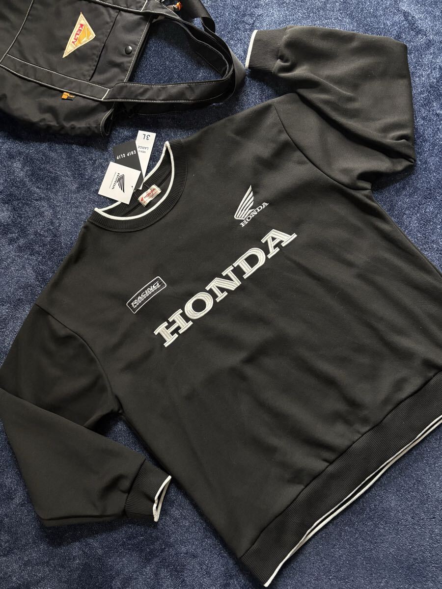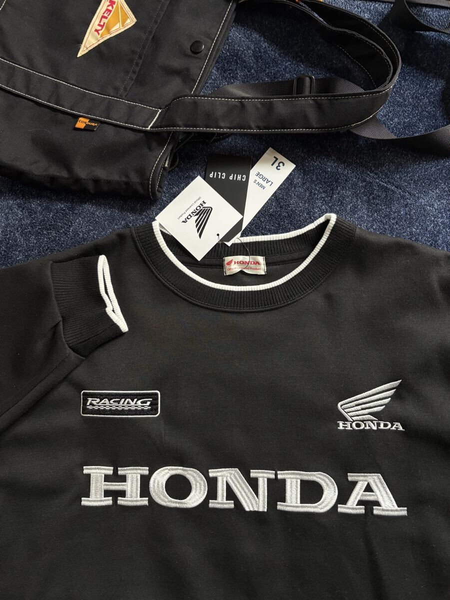 新品 HONDA ホンダ 豪華立体BIGロゴ刺繍 ホンダ クルーネック スウェット 長袖 ブラック size3L HONDA Official Licensed Product