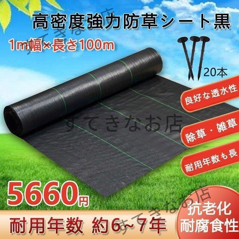 防草シート 1m幅×長さ100m 農用シート 除草 雑草 芝生 草 抗菌剤入 耐用年数 約6-7年 砂利 芝 人工芝 高密度強力防草シート・黒DIY 雑草シート 雑草駆除