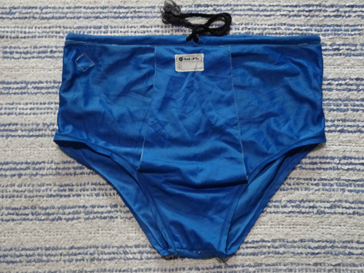 264 Asics jelenk ジェレンク クラッシックスイムパンツ SizeO サックスブルー・薄い素材で透け感の有る 中古