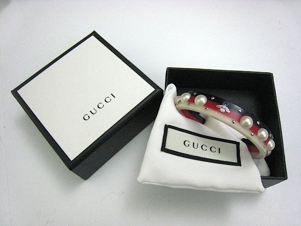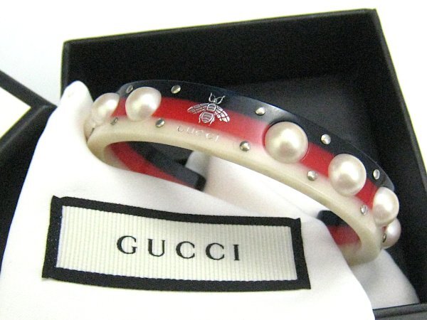 ★超美品!!★M★グッチGUCCI ビー カフブレスレット バングル フェイクパール 蜂 ★