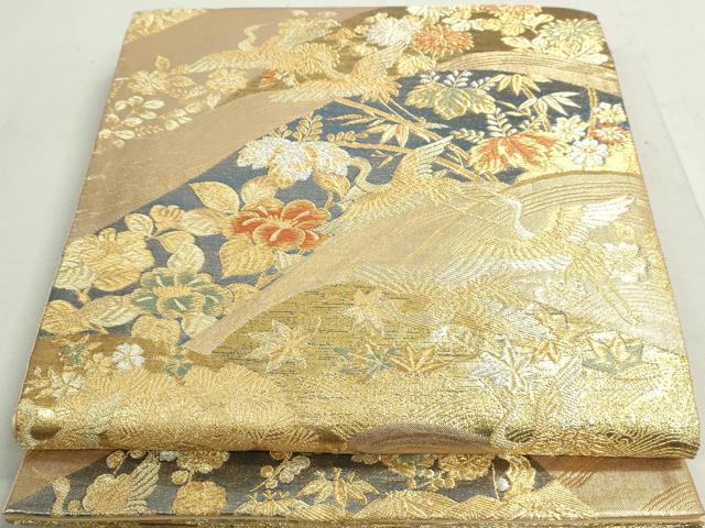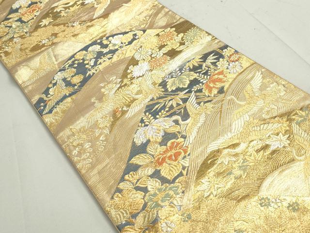 平和屋着物◎六通柄袋帯 飛鶴花文 金銀糸 正絹 逸品 DAAY4708qa
