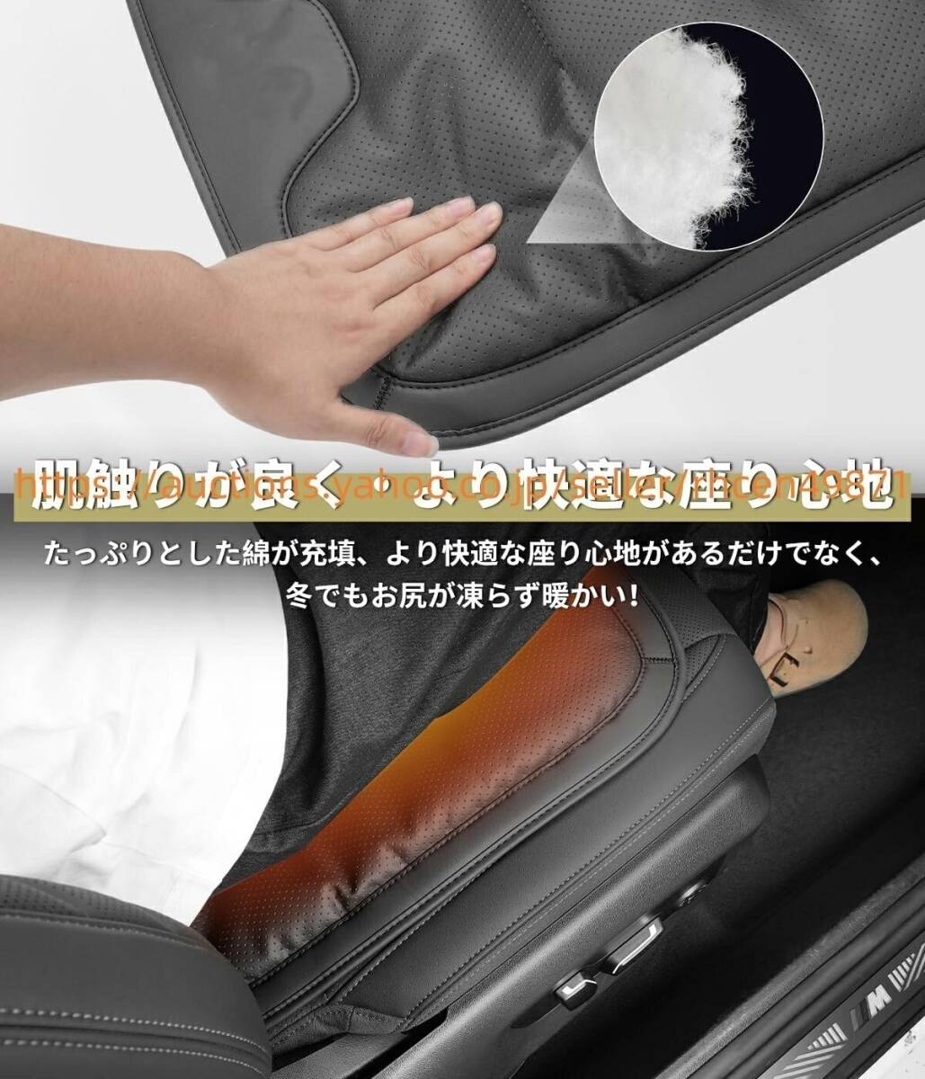 良い肌触り抜群な通気性オールシーズン対応 このカーシートクッションセットは、手触りの良い高品質のPUレザーで作られており、詰め物は柔らかい綿であり、しっかりとした包み込み感を提供し、快適な座り心地を実現します。カバーの革には無数個の通気穴があり、通気感が良く、長期間座っても蒸れません。夏は蒸れず、冬はお尻が冷たくなく、一年中使えます。車を頻繁に利用する方におすすめです。