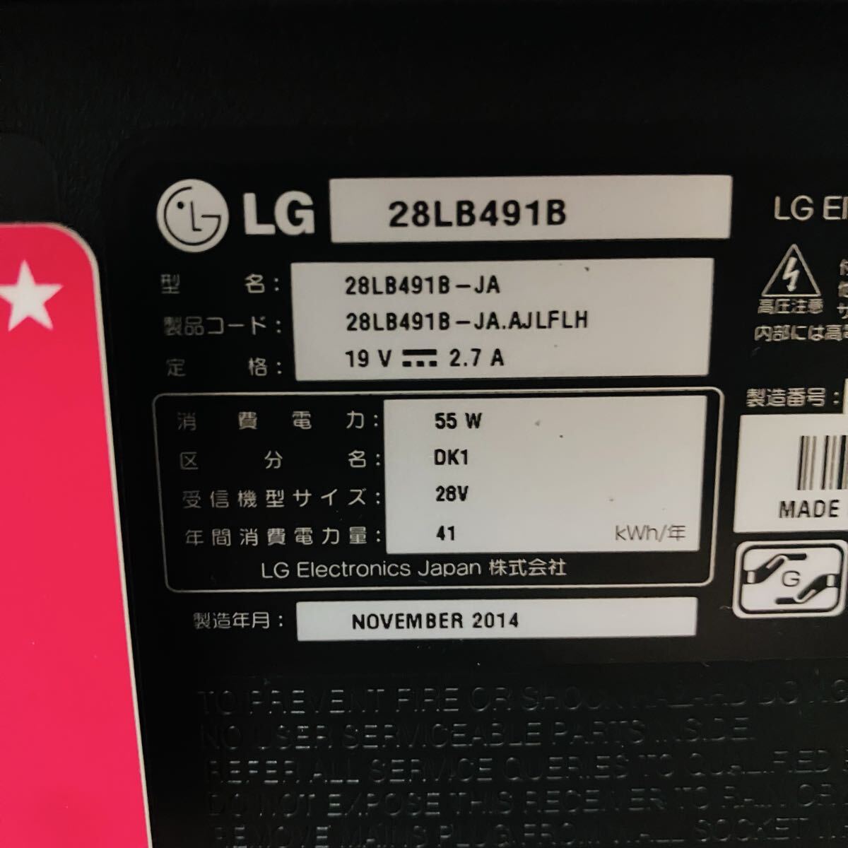 LG 28インチ 液晶テレビ 2014年 28LB491B - JA
