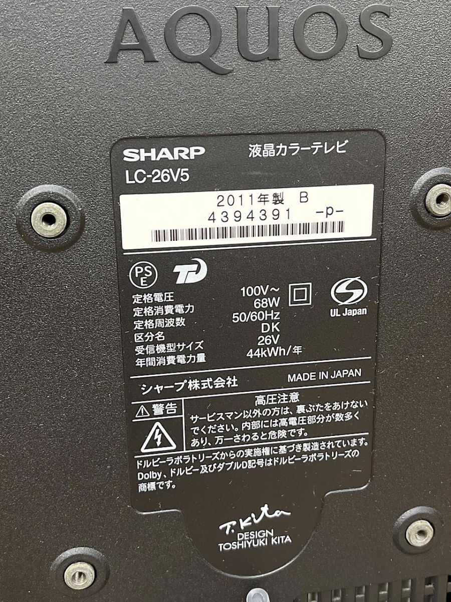 SHARP シャープ 液晶テレビ 26V型L スタンド・リモコン付 LC-26V5