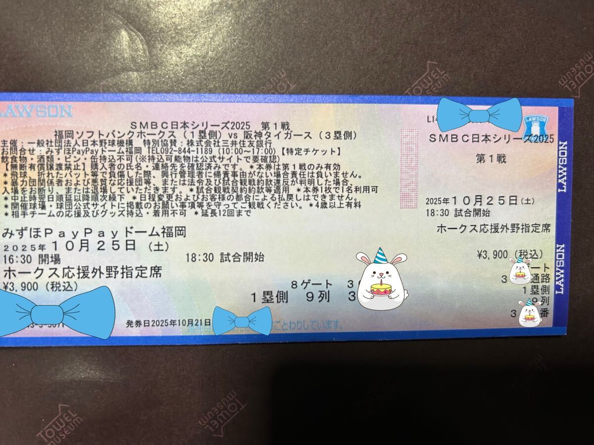 | 商品名稱 : | 2025 日本シリーズ 第1戦 10/25 ホークスvsタイガース ホークス応援外野指定席 9列目 1枚 |