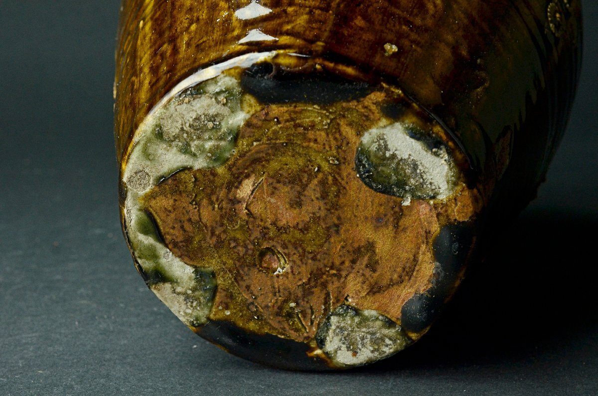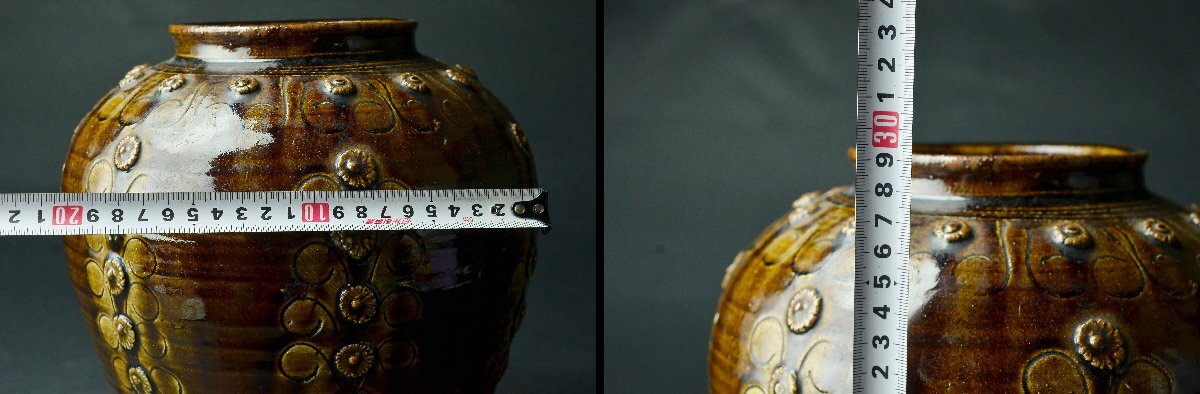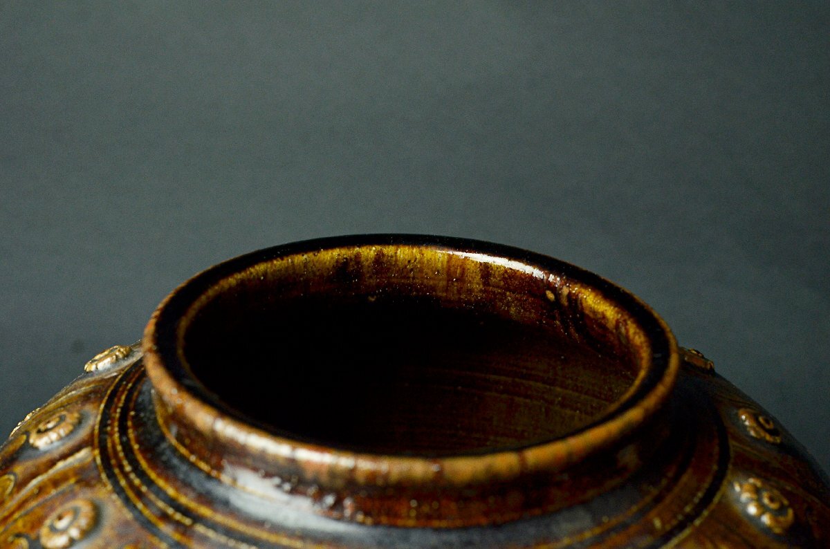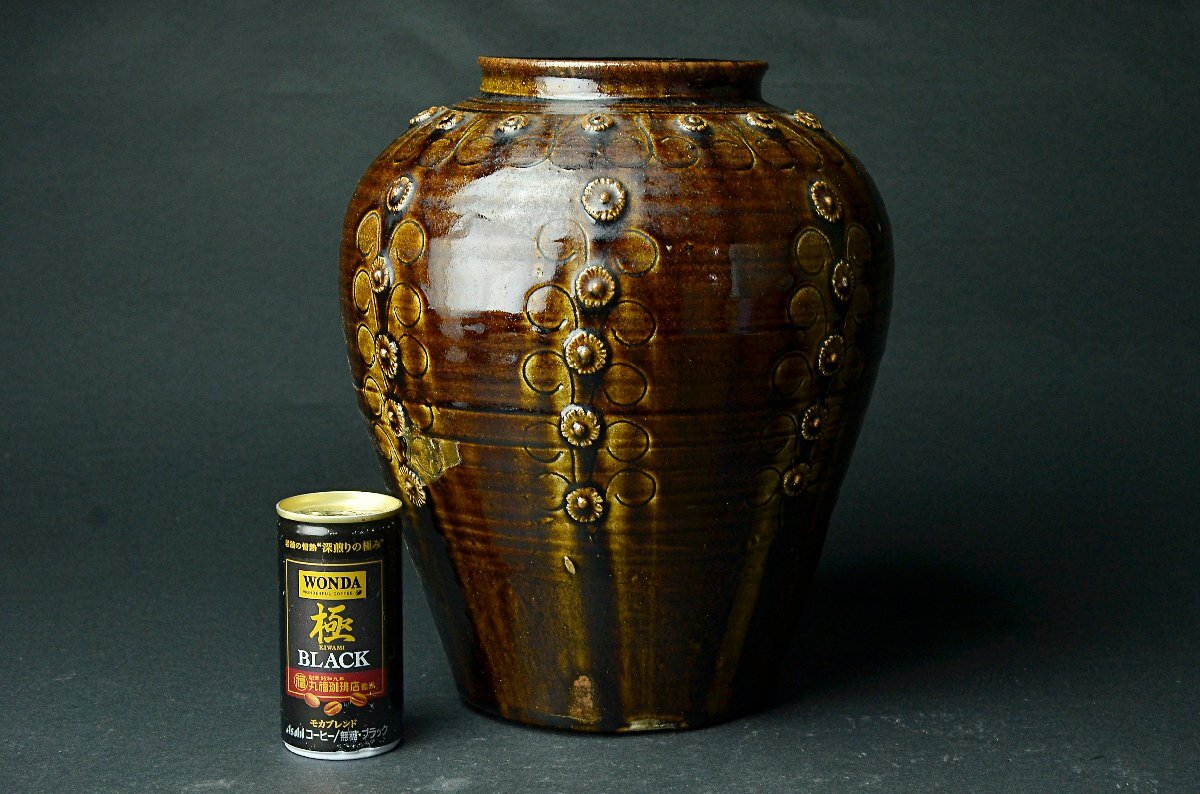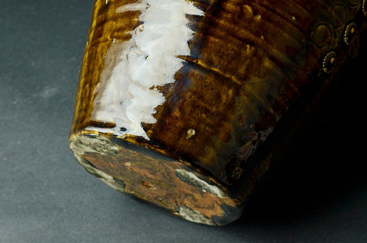 鎌倉時代 古瀬戸鉄釉貼花花紋壺