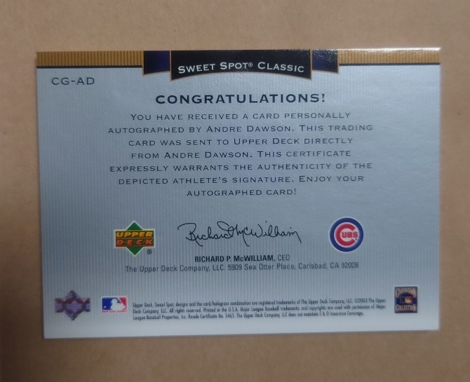 | 商品名稱 : | 2003 UD Sweet Spot Classic Andre Dawson auto アンドレ ドーソン サイン Upper Deck 直筆サイン カブス 直筆サインカード |