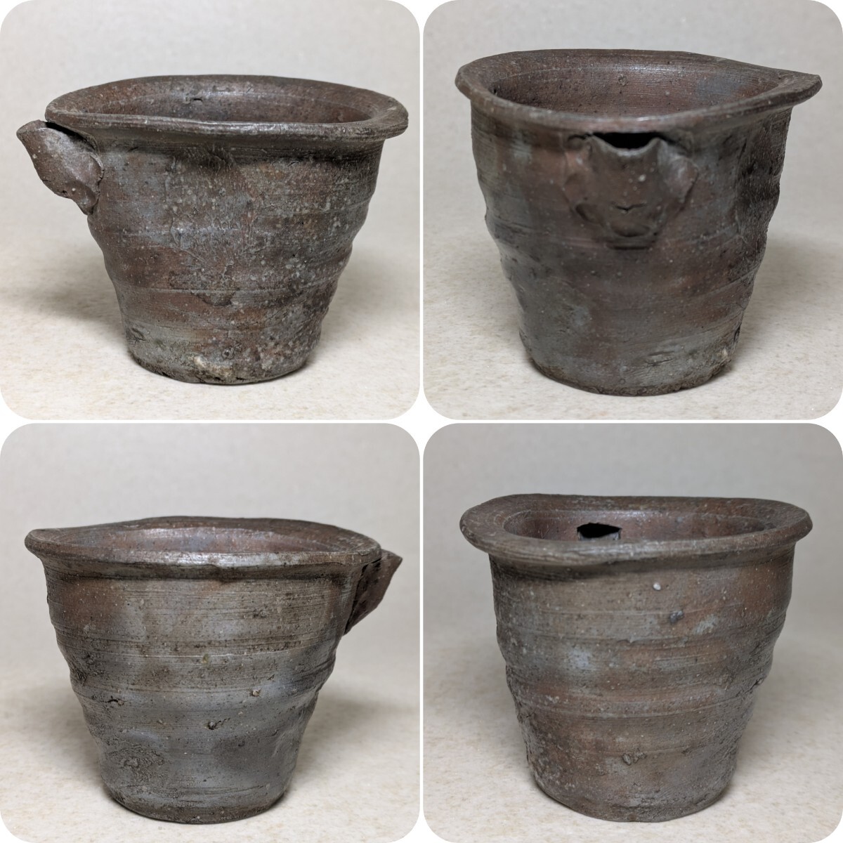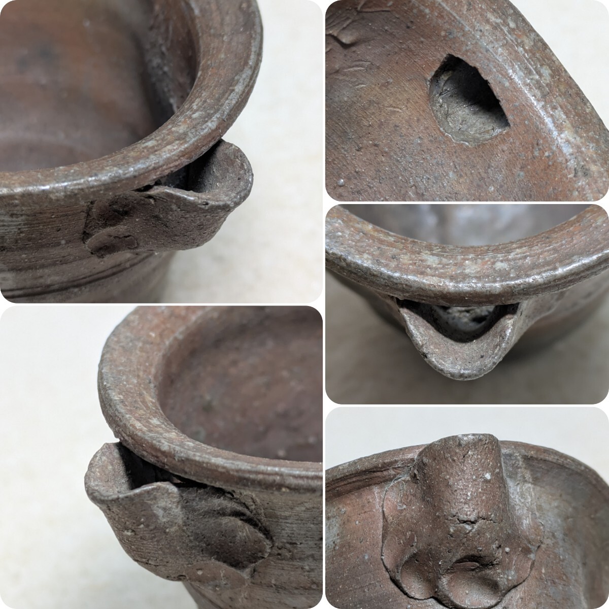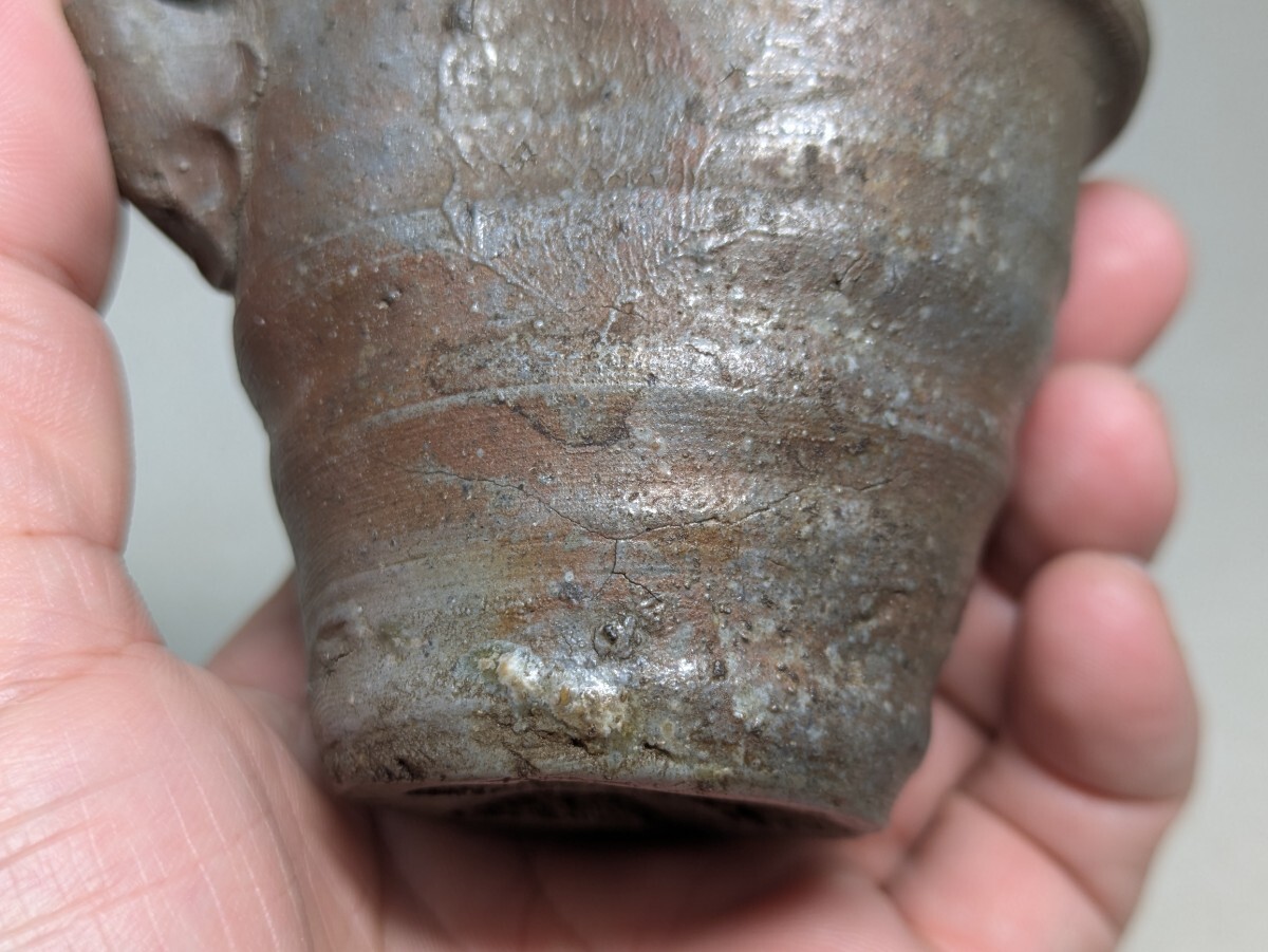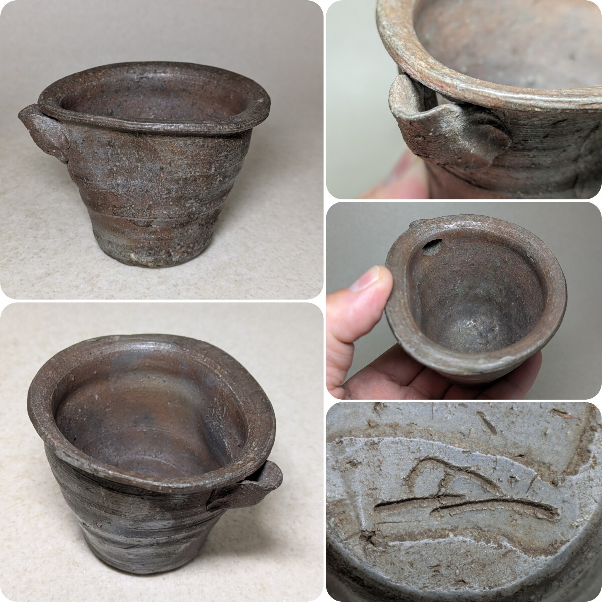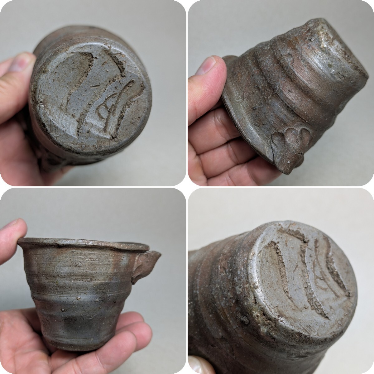 【送料】 本州、四国、九州地方 一律1500円。 北海道、沖縄 2000円。 ゆうパックにてお品物を発送させて頂きます。 【状態】 古民家整理品初だしのままの状態です。 簡単な拭き掃除しかしていません。 詳細含めコンディション等々は画像からお読み取り下さい。 くすみ汚れスレあり。割れや欠けはありません。 ※窯傷あり。裏には抜けておりません。(画像9) 【サイズ】 高さ約6cm 直径最大約8cm 底直径約4cm 重量128グラム 『御取り引きについての注意事項』 ・以下の注意事項を必ず確認して下さい。ご理解いただけない方は入札をお控え願います。 ・評価の悪い方(良い評価90%を下回る)や評価が一桁の方は、御入札前に質問からご購入の意思がある旨をお知らせ下さい。 お知らせ無く入札された場合は入札から削除させて頂く事が御座います。 ・お品物落札後は取り引きナビにてお進めください。 尚、ご挨拶や自己紹介等々のメッセージは割愛させて頂きます。 頂いたメッセージにも返信は控えさせて頂きますことご了承下さい。 発送に関する時間や日にち指定等の御取り引きを行う上で必要なメッセージにのみご返信させて頂きます。 ・評価に関しましては、評価不要のお客様は当方への評価も行わないようお願い致します。評価を頂戴したお客様のみ、頂いた評価と同等評価をさせて頂きます。 ・当方は旧家、民家の整理品や蔵出し品を中心に出品させて頂いておりますが、落札後お品物の出所や所有者様の情報等々の御問い合わせにはお答え出来ません。 ・落札後、48時間以内需在賣家要求時間完成匯款 に取り引きナビにて御連絡ください。48時間を経過した時点で落札者都合のキャンセルとさせて頂きます。 ・お支払は「かんたん決済」のみの御取り引きとなります。 お支払期限を過ぎた時点で御取り引き中止とさせていただき、落札者様都合のキャンセルとさせて頂きますのでご注意願います。 『発送についての注意事項』 ・当方が指定させて頂いた運送業者のみとなります。落札後の配送形態の変更希望はお受け致しません。(基本的にはゆうパック、レターパックとなります)。 発送のタイミングはフォームにも御座いますが、ご入金確認後3日~6日で発送させて頂きます。 ・追跡サービスの無い配送形態でお届けは致しません。 ・当方への郵便局の集荷時間は発送日の15時頃になります。追跡番号の反映は15時以降となりますのでご了承下さい。 こちらの都合で午前中に発送連絡をさせて頂く事がございますが追跡番号は15時以降となりますのでご了承下さい。 ・梱包に尽きましては、リサイクルの段ボールや、市販の緩衝材と併せて新聞紙を使用させて頂いております。ご了承ください。 ・ゆうパック着払いをご希望のお客様。 当方は、そのタイミングで手元にあるダンボールで最適なサイズを選び梱包致しますので、梱包サイズを選べません。よってワンサイズ大きな梱包で届いた場合の差額等は保証いたしませんのでご了承下さい。 >