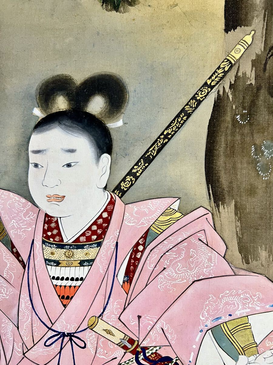 【真作】【仙】河辺華挙「牛若丸」絹本 肉筆 合箱 金泥 歴史人物画 源義経 武者絵 絵画 掛軸 幕末-昭和期の日本画家 大阪の人 師: 小田海僊