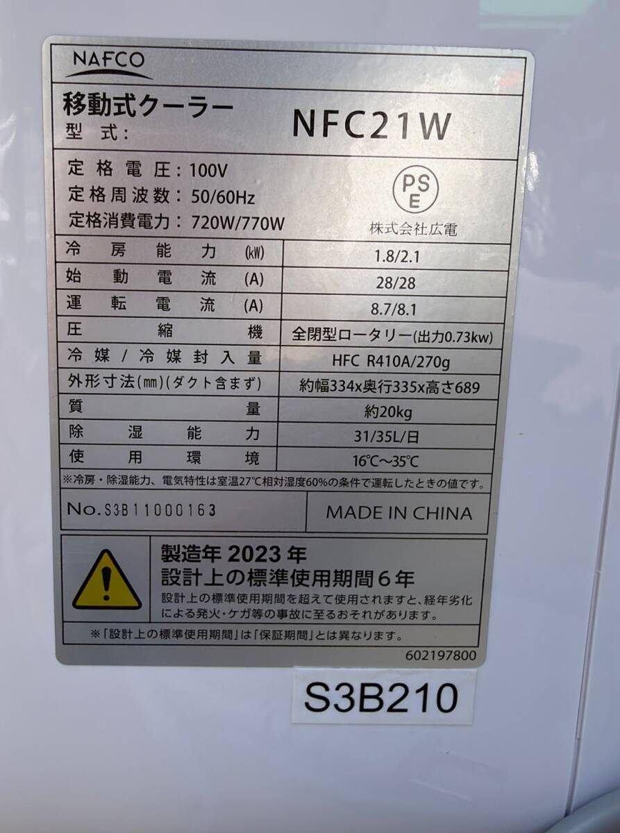 | 商品名稱 : | 中古稼動品 ナフコ 移動式エアコン NFC21W 23年製 (付属品 ワイヤレスリモコン ・排熱ダクト) |
