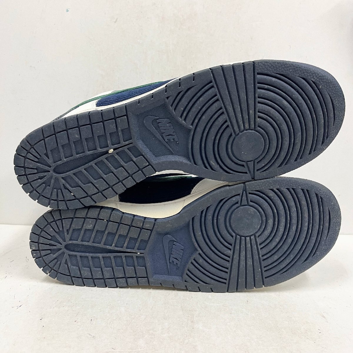 ■入札・取引等は、下記の内容全てをご了承頂いた方のみでお願いいたします。■ ※出品商品は全て弊社基準に沿って真贋鑑定済み商品ですのでご安心ください。 ※WORM AUCTIONでは東京・大阪の2拠点から出品・発送をしています。 同じ拠点から発送の商品は同梱発送で送料がお得にご購入頂けますので、出品一覧ページ も是非ご覧ください! 同梱(まとめて購入)送料:2足まで加算なし/3足目以降は1足ごとに+500円(同梱1梱包あたり) ※主な同梱発送(まとめて購入)の条件は下記の3点です※ 1. 出品拠点が同じ 2. 最初の落札から72時間以内 3. 各商品を個別で「購入手続き」していない(=取引開始前) ※最初に終了した商品から72時間以内に「まとめて購入手続き」のお手続きがない場合、同梱発送はできません。 ※北海道、沖縄、離島については商品ページ下部の「発送詳細」をご確認ください。 ※上記3点に加え、最大20件までなど他にも条件がございます。 ※同梱発送(まとめて購入)をご希望の方は、ご入札前にこちらの公式ヘルプをご確認ください:まとめて購入手続き(ストア) ※システム上で「まとめて購入」となっていないご注文の個別の同梱はお受けできません。誤出荷・補償対象外等のトラブル防止のためです。予めご了承ください。 ▽出品拠点 大阪 ▽サイズ 29.5cm ▽モデル NIKE DUNK HIGH DH0953-400 COLLEGE NAVY/NOBLE GREEN ▽製造年2021年製 ※製造からおよそ8年以上経過した商品は経年により加水分解等の劣化が生じている可能性があり、着用により破損する可能性がございます。詳しくは「・ソールの状態」の下の注意書きをご確認ください。 ▽商品状態 『中古』となります。 詳しい商品状態は下記内容と、商品画像にてご確認くださいませ。 ▽商品詳細 ・付属品:箱有、替え紐、黒タグ ・アッパーの状態:全体的な汚れ、履きじわがございます。 ・ソールの状態:全体的な汚れ、すり減り、黄ばみがございます。▽劣化・加水分解に関するご注意 ※製造からおよそ8年以上が経過した商品は、経年により加水分解などの劣化が生じている可能性があり、着用によって破損する恐れがございます。 また、加水分解以外にも、接着剤の劣化や素材の硬化などにより、破損が起こる場合がございます。 目に見える劣化が確認できる場合は「状態欄」に記載しておりますが、見た目に問題がない商品でも、製造から年数が経過した商品は着用時に破損する可能性はございます。 そのため、製造から年数が経過した商品については、観賞用・コレクション用途でのご購入をおすすめいたします。 誠に恐れ入りますが、ご購入後の返品はお受けできません。着用は自己責任にてお願いいたします。