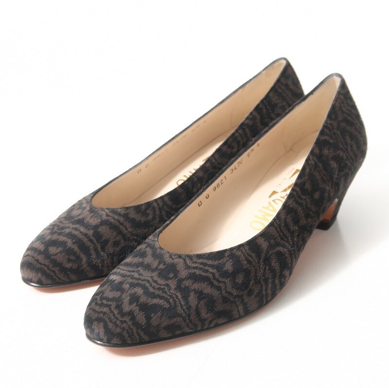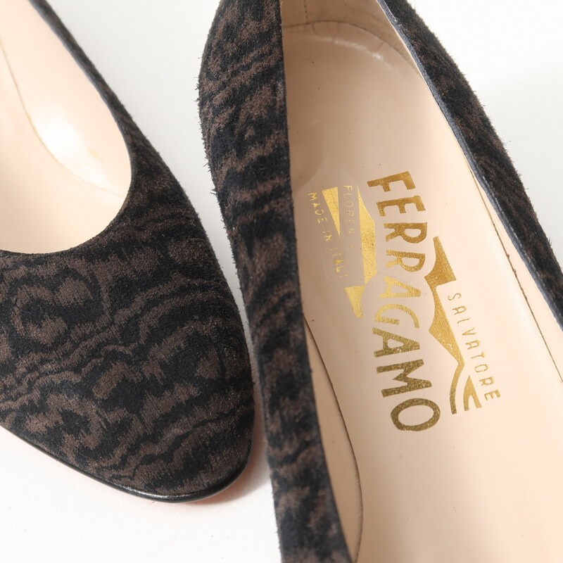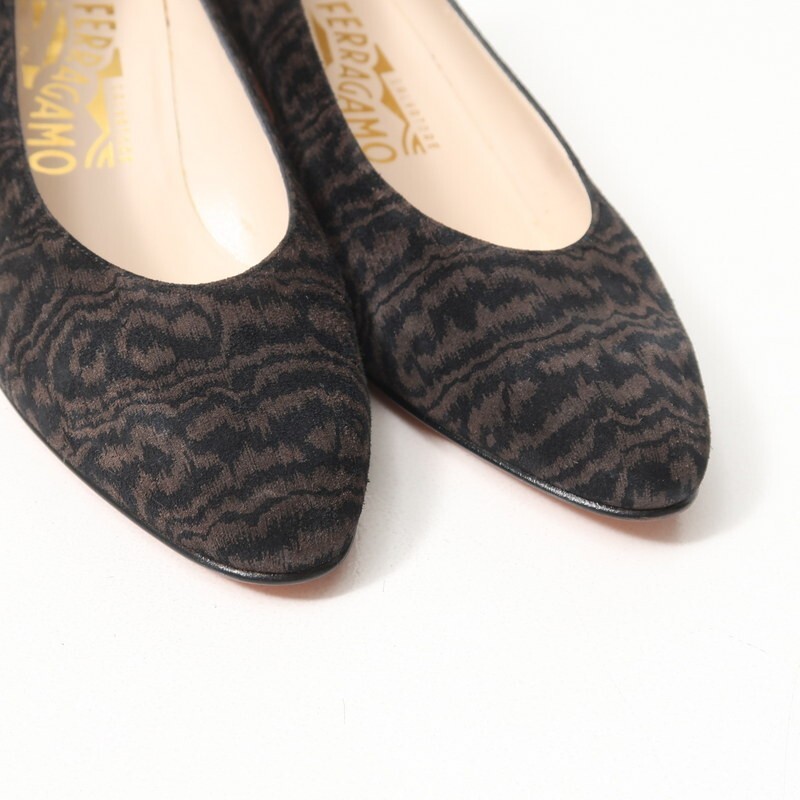 | GS3454*未使用 サルヴァトーレフェラガモ Size 6.5 スエードレザー パンプス 総柄 靴 ブラック×ブラウン系 Salvatore Ferragamo | |||
