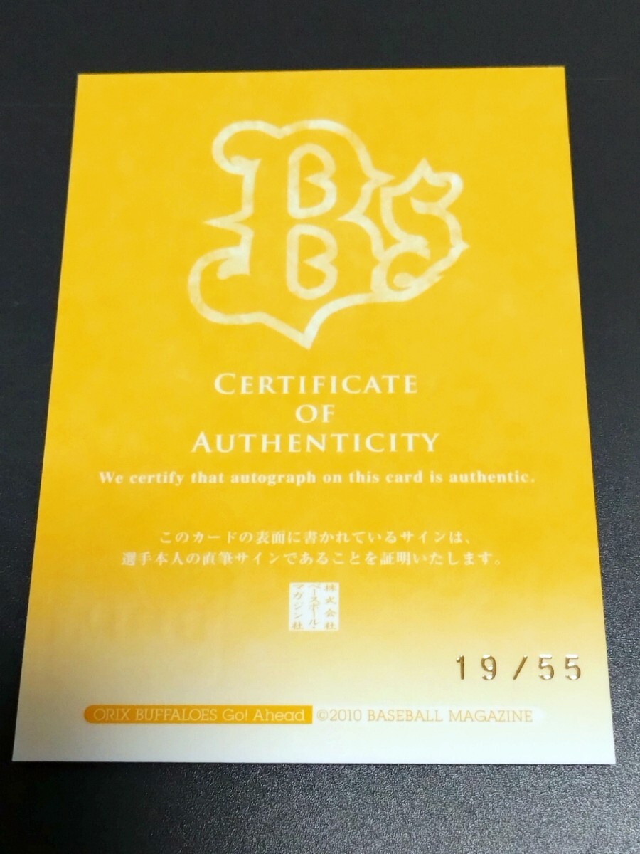 | 商品名稱 : | ◎T岡田 タテ型直筆サインカード◎オリックスバファローズ2010Go!Ahead◎19/55 |