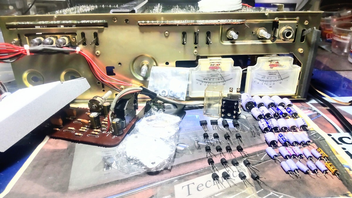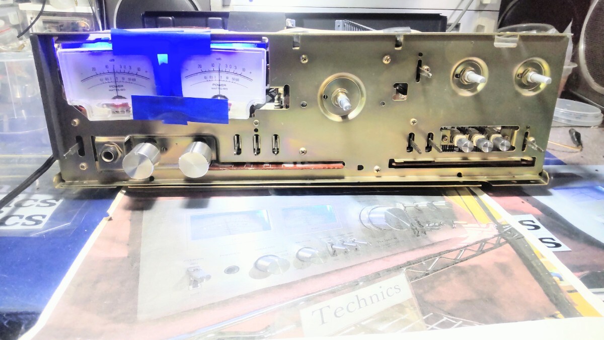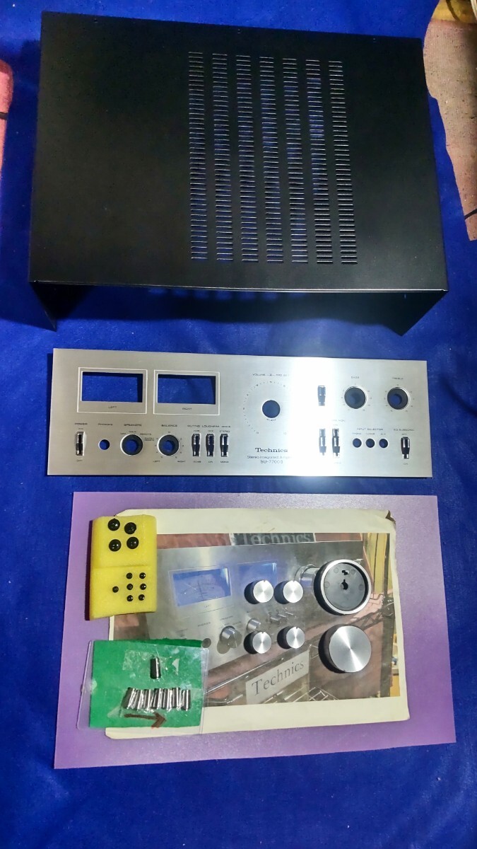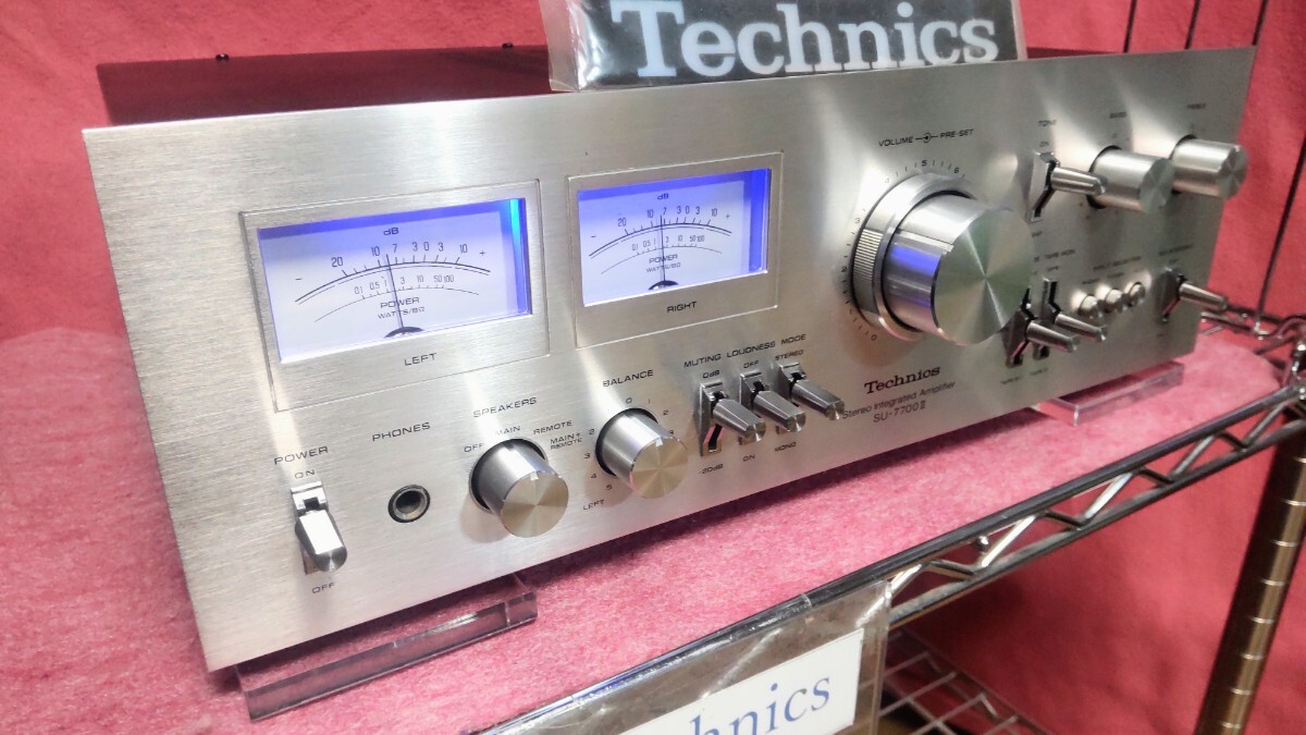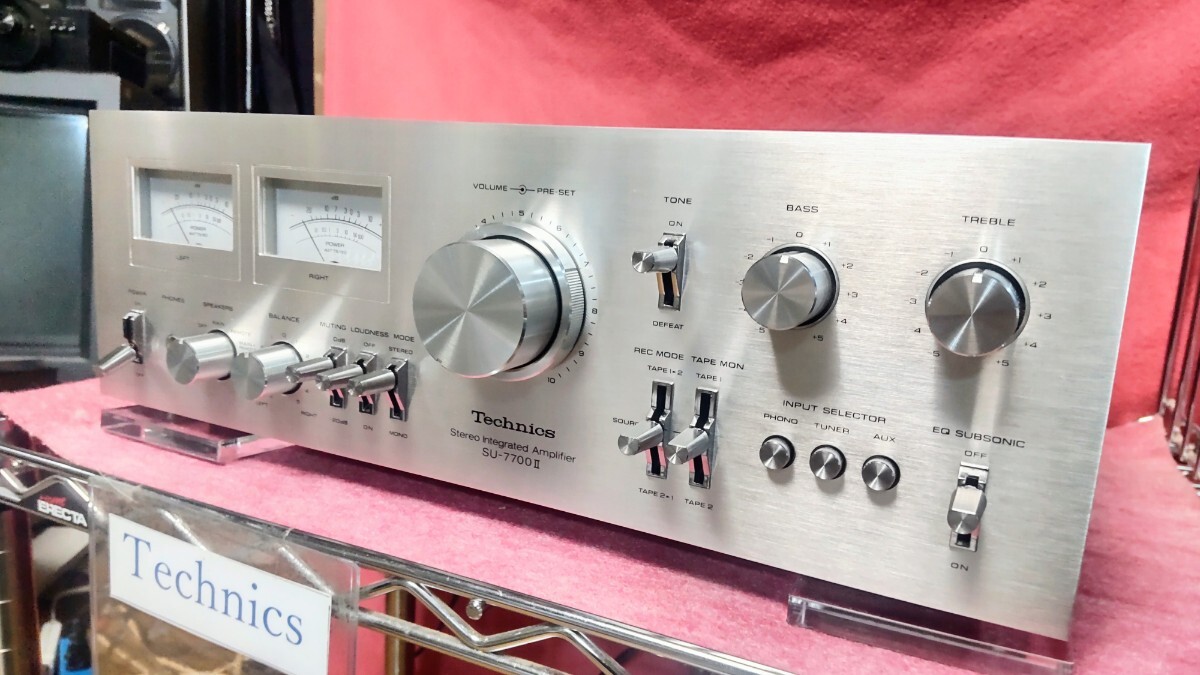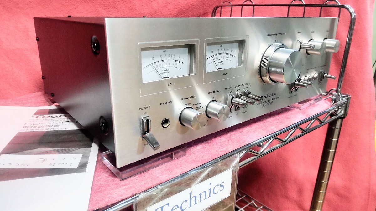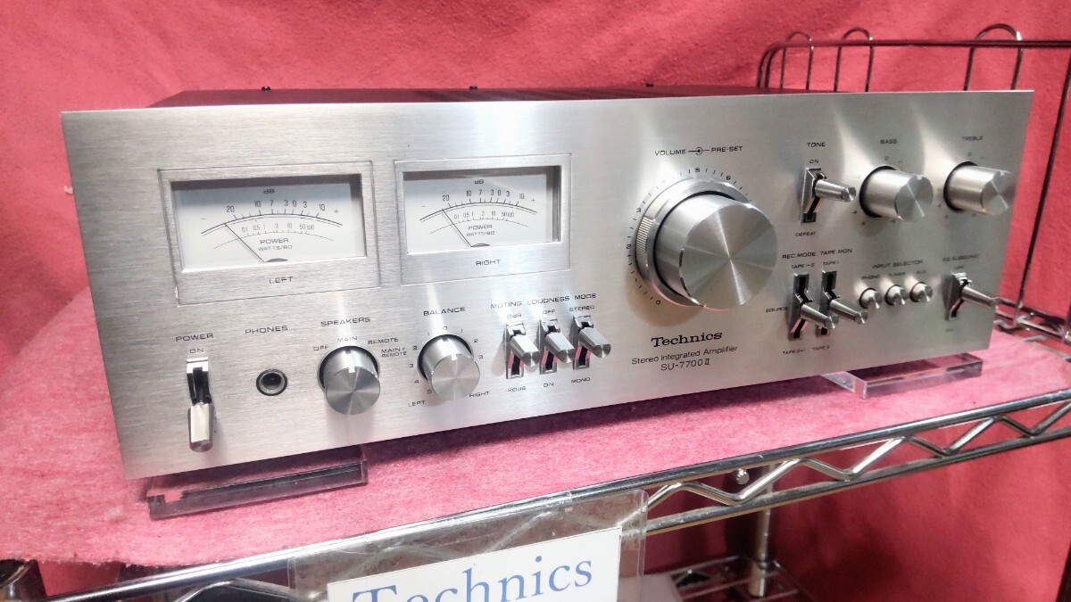 こんにちはTechnics7700です! いつもアクセス頂きありがとうございます。 テクニクスプリメインアンプSU-7700Ⅱメーター照明青色(ブルー仕様)の出品です。 先ず説明文の後半では動作確認及びメンテナンス内容について書かせて頂いてます、動作確認につきましで全ての機能の動作について書かせて頂いてますので動作確認及びメンテナンス内容も併せてお読み頂き御検討頂けましたら幸いです! テクニクスのこのシリーズのアンプではこのSU-7700Ⅱが上位モデルと共に最終生産モデルとなります、この最終モデルでは70年代のテクニクスのアンプの顔と言える程のデザインを再び採用し生産終了となり消えます、当時非常に注目された前作の7700を筆頭に更に音質向上並びにパワーアップされて発売されたのが、この7700Ⅱです!現在もパワーも十分で大きなスピーカーでも十分にドライブ出来ます! 又終段のトランジスタは現在も評価の高いメタルキャントランジスタが使用されてるのも価値観を感じる良い点だと思います。音質につきましてはこのシリーズのアンプ特有と言える程の とてもガッツで透明感の有る高域とズシリと来る低域も再生出来るのがこのシリーズのアンプの良さだと考えます、この様なサウンドを聴かせてくれるアンプでは有りますが更に音質をリファインさせる事を目指して電解コンデンサーも音質の良い電解コンデンサーを私なりに考え選びインストールして組み上げてます、70年代のアンプではこの電解コンデンサーの交換によるメンテナンスは音質向上の観点からも非常に有効なメンテナンスと考えます! その他のメンテナンスにおきましても半田のクラック等に寄る不具合で半田の補修、補強作業が必須となる箇所は多数有ります、ですのでその時に手を掛けた個体にその箇所には異常が無い場合においても今後の使用を踏まえ一律に取り入れるメンテナンスも行ってます。 又現在はレコードやテープ等を含めアナログ音源が非常に見直されアナログ版等も大復活されてるのも事実です70年代のアンプでしたら尚更それらしく視聴頂けるのではないかと思います 是非お手元にて聴いてみて頂きたく思います! 勿論CD等のデジタル音源も良音で視聴頂ける事は今更改めて言う事ではないと思います レコードプレーヤー以外はAUXが多用されますがTAPE入力やTUNER入力でも同じくご使用頂けます。 今回のSU-7700Ⅱも動作音出し良好です! 外装につきましては苦労させられる個体では有りますが結果としまして、申し分の無い個体に仕上がったと考えます、私も大変嬉しく思います、先ず前面パネルはスリ傷等は特にこれと言っては…と言える程良好でパネルの光沢もこれ以上は無いでしょう、と言える程良好です! 各ツマミ等のメッキパーツもピカピカに仕上がってます、勿論前面パネルの印字消え、印字のカスレも無くこの点も良好です、この様な事から仕上がりバッチリとさせて下さい! 出品内容ですが SU-7700Ⅱ本体 落札のプレゼントとしまして 取説のコピー版をお付けします。 (このコピー版ですが現行のパナソニック様より承認を頂いた物となります、画像5の物です) メンテナンス内容ですが デュアルトランジスタの交換 小信号トランジスタの交換 電解コンデンサーの交換(BPコンデンサー、トーンコントロールの基盤のも含みます) 電源トランスの防振対策としてトランスの取り付け部分にゴム製の防振ワッシャーを入れて組んでます。 スピーカーリレーを分解して接点研磨仕上げ 終段のトランジスタの放熱シリコーンの塗り替えとマイカシート全数交換 各VOLの接点洗浄 各切り替えスイッチの接点洗浄 リモートアクション切り替えとファンクション切り替えのメンテナンス メーター照明を青色(ブルー仕様)で製作してます、使用したLEDの球は合計12発仕様で製作してます。(何度か照明の色の変更のお問い合わせを頂いた事が有りますが原則お受け出来ませんので画像及びこの説明文の物とさせて頂きます事をご理解願います) RCAジャックの研磨仕上げ その他半田の補修、補強が必須と考える箇所の補修、補強作業 テスト信号を入力して出力確認画像7 カバーの再塗装画像4 外装パーツのクリーニング仕上げ画像10 長時間のランニングと大音量での音出しテスト 動作確認ですが スピーカー出力 MAIN REMOTE2系統音出しOK 負荷インピーダンス MAIN or REMOTE 4~16Ω MAIN + REMOTE 8~16Ω ベッドホーン出力 音出しOK サブソニックフィルター動作OK マイナス20dbミューティング動作OK バランスコントロール動作OK ラウドネス動作OK トーンデフィート動作OK トーンコントロール バス トレブル動作OK プリセットボリューム機能OK ステレオ モノラルのモード切り替え動作OK AUX音出しOK TUNER入力音出しOK PHONO(レコードプレーヤー)MM対応音出しOK TAPE入力 1 2音出しOK TAPEダビング機能 1~2 2~1共に動作OK REC OUT 出力OK プリセットボリューム機能OK リアコンセント スイッチ連動 非連動共に通電OKで全ての機能の動作音出し良好です! 現在全ての機能の動作音