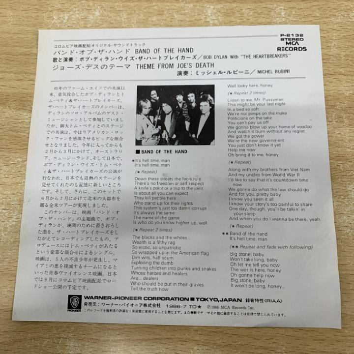 | 商品名稱 : | ●01)【1点限り!】【見本盤】Bob Dylan With The Heartbreakers/Band Of The Hand/ボブ・ディラン/P-2132/EPレコード/7インチ/国内盤/A |