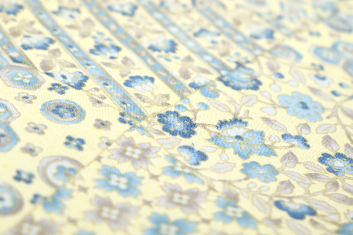 たいへん柔らかで風合い豊かな紬地は、ごく薄い黄色お色目でございます。