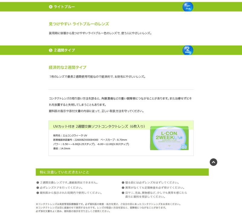 | 商品名稱 : | コンタクト 2箱セット エルコン 2ウィーク UV 1箱6枚 2週間交換 L-con 2week UV加工 ツーウィーク クリア コンタクトレンズ LCON |