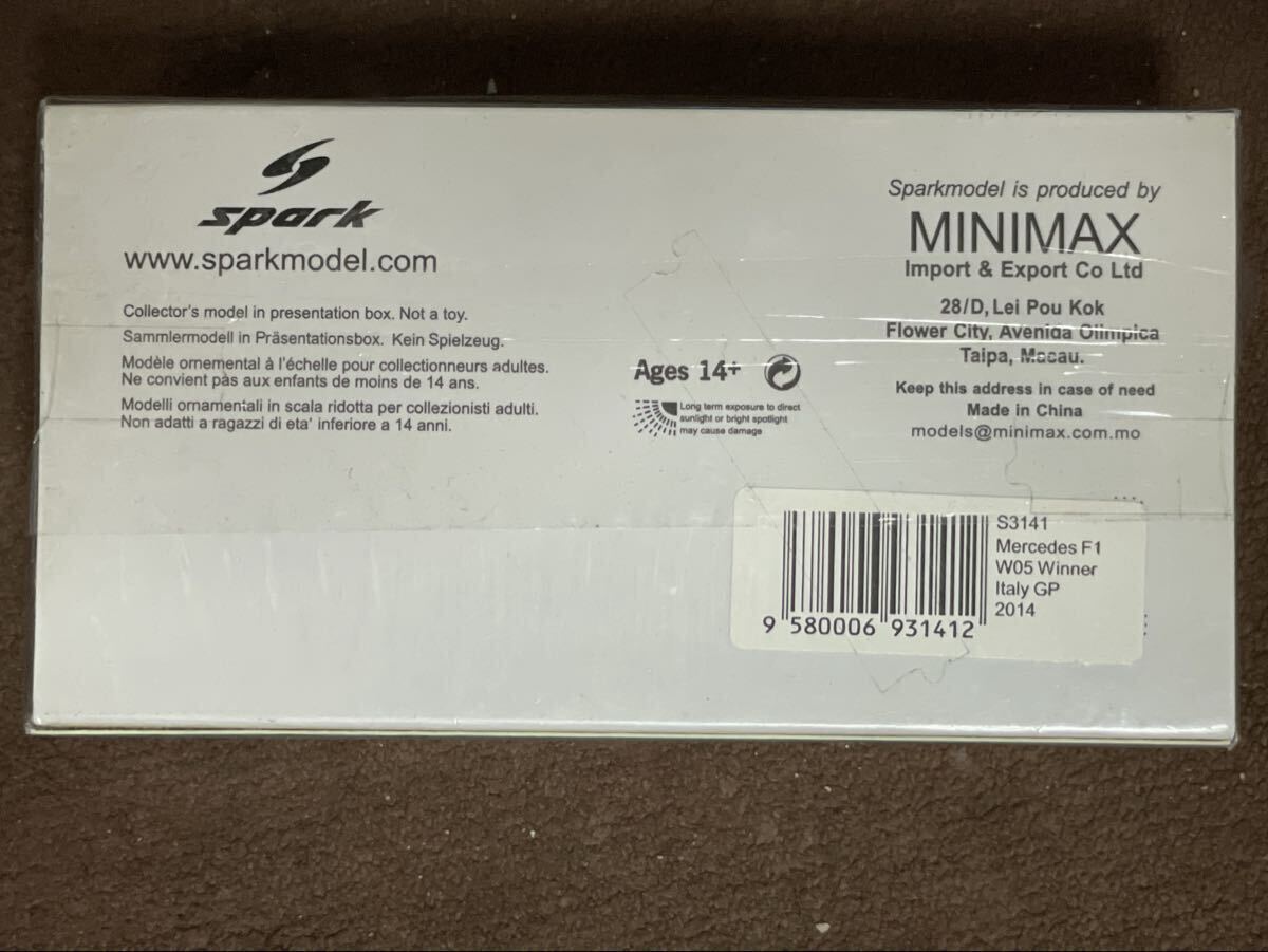 Mercedes F1 W05 No.44 Winner Italian GP 2014 Lewis Hamilton (1/43スケール S3141)