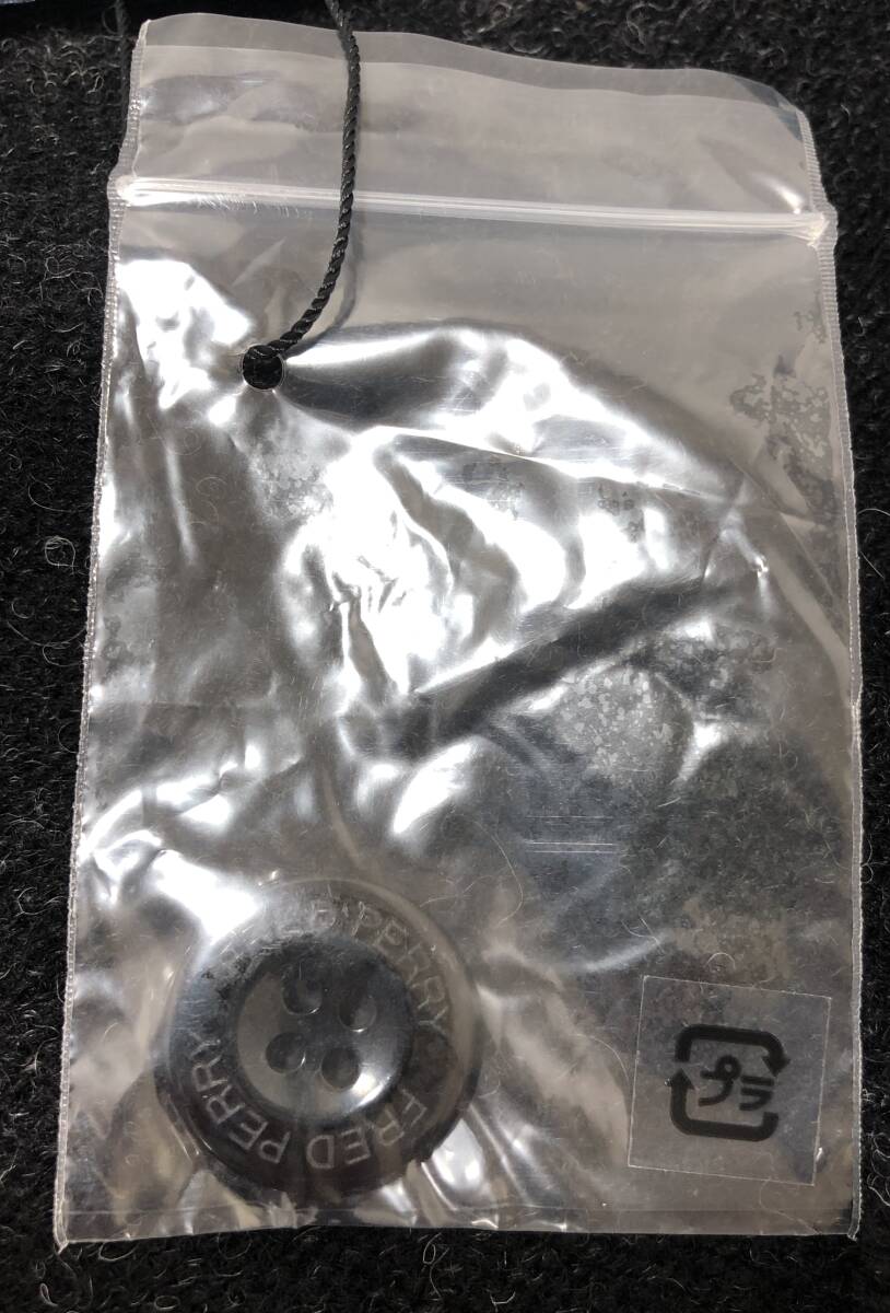 全体は黒とチャコールグレーの間の様な色味でVネック部分は白とグレーのボーダー、ブランドロゴはグレーになります。