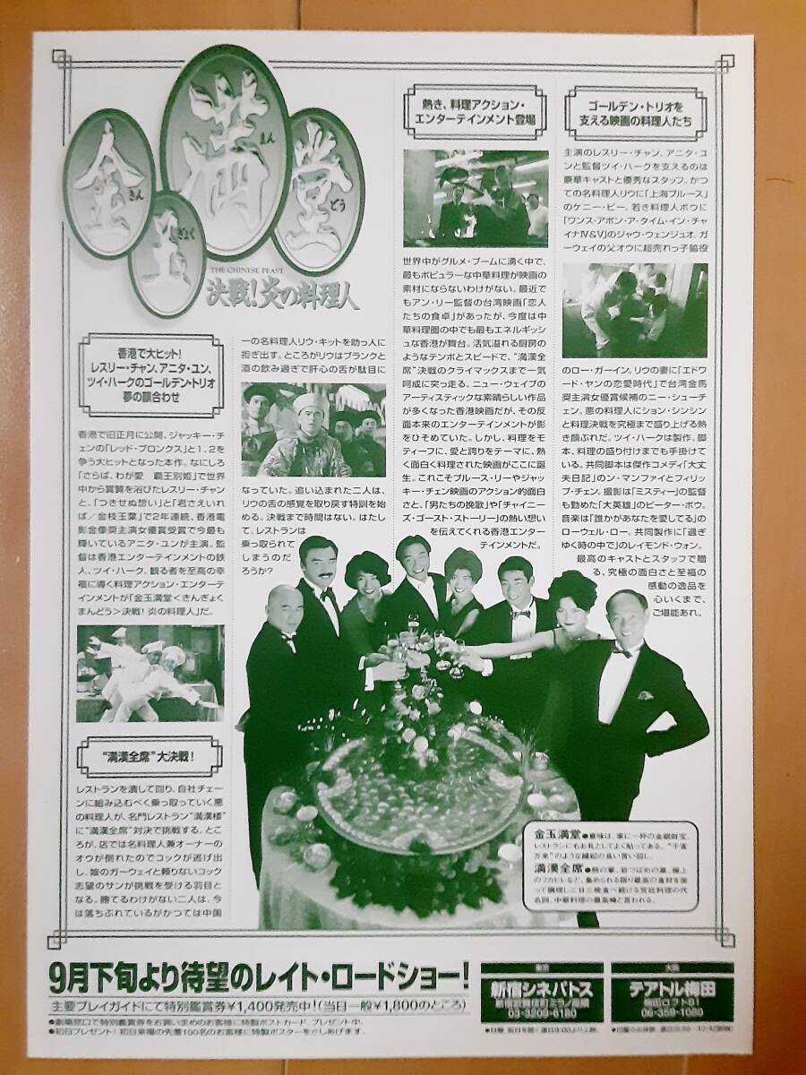 炎の料理人 」の映画チラシ2 種(①4 色刷② 単色刷・特集上映「ツイ・ハークの世界」)になります。