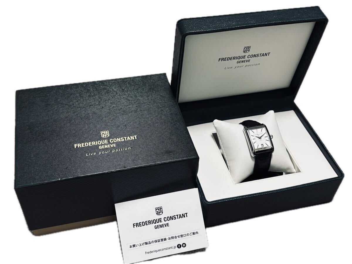 この度はご覧頂きありがとうございます。フレデリックコンスタント腕時計の出品になります。 型番:FC-303S4C6 サイズ:33.4 x 30.4 mm 文字盤 : シルバー(サファイアクリスタル) 駆動方式:自動巻(cal. FC-303) その他:10気圧防水 状態:中古美品 時計の詳細は以下のURLもご参照下さい https://frederiqueconstant.jp/products/detail.php?id=FC-303S4C6 中古購入し、ベルト交換をして使用していました。付属の革ベルトは純正で、まだまだ使用できる状態ですが、前オーナー様が穴を一つ追加されています。時計本体は目立つ傷は無く、ガラス易碎品限空運,非易碎品可使用海運。 も綺麗で、中古としては(個人主観では)美品だと思いますが、使用に伴う小傷や汚れはございます。過度に傷を気にされる方は予め入札をご控え下さい。 稼働に問題は御座いません。日差は未測定の為不明です。付属品は外箱、内箱説明書、電子保証登録案内カード(購入店記載あり、2023年8月購入)になります。 大変恐縮ですがトラブル防止のため、落札後24時間以内にご連絡需在賣家要求時間完成匯款 頂ける方のみご入札をお願い致します。ご連絡のない場合には落札者様都合によるキャンセル手続きを行わせて頂く場合がございますのでご了承下さい。 また商品はノークレーム&ノーリターンでお願い致します。宜しくお願い致します。 フレデリックコンスタント クラシック カレ オートマチック FC-303S4C6 ブランド:FREDERIQUE CONSTANT CLASSICS(FREDERIQUE CONSTANT) アナログ式/デジタル式:アナログ式 腕時計の駆動方式:自動巻き ケース形状:レクタンギュラー 文字盤カラー:ホワイト系 腕時計本体機能:シースルーバック アワーマーク:バー ケースカラー:シルバー系 ケース素材:ステンレス ベゼルカラー:シルバー系 ベルトカラー:ブラック系 ベルト素材:本革 防水性能(気圧):3気圧 ケース経(mm):33.3mm ケース厚さ(mm):9.71mm >