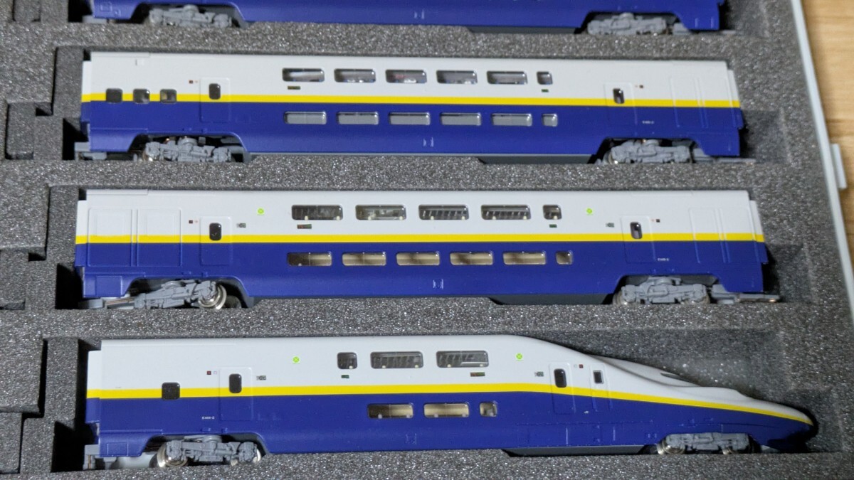 閲覧いただきありがとうございます。 TOMIXのE4系です。 Aセットがベースですので、両方の先頭車がTN付きのパンタグラフ可動品です。 ヘッドライトがそのままでは白だけなので、実車に合わせて片側プリズムを着色してオレンジに寄せてます。 室内灯は庄龍鉄道製とイルミです。 カプラーはU字の通電カプラーに交換しています。 ケースは古いTOMIXのケースに社外ウレタンで1編成を1つのケースに収めています。 一応の動作やライトは確認していますが、輸送の際に接点がずれることもありますのでご了承ください。 ノークレームノーリターンでお願いします(2025年 11月 8日 11時 24分 追加) 日曜的に使っていたため、やや傷もございます。 もともとの付属品はございません。 おまけとして、一部使用済みのKATOシールと未使用のペンギンモデルシールをお付けします >