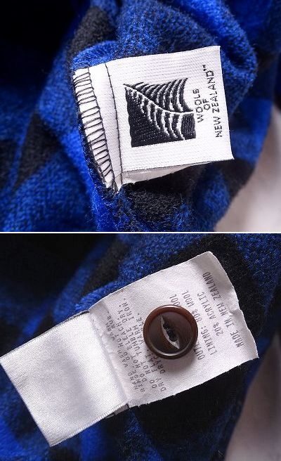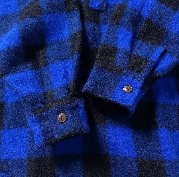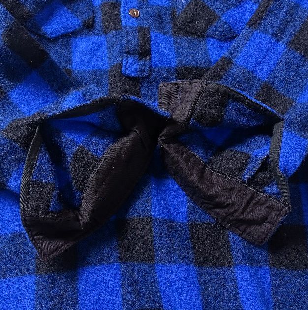 SWANNDRI スワンドリ スワンドライ ニュージーランド製 ウール100% 長袖 バッファローチェック ワッペン バンドカラー ポケット付き プルオーバー シャツ メンズ(L) 毛 青 黒 /e-044