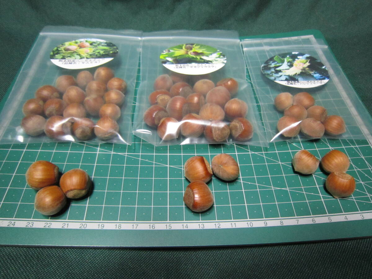 お送りする堅果(種子)の品種と数量はこの秋に採れたヤムヒル20粒、サカジャウエア20粒、ハレシェーリーゼン10粒の計50粒になります。 (写真参照)