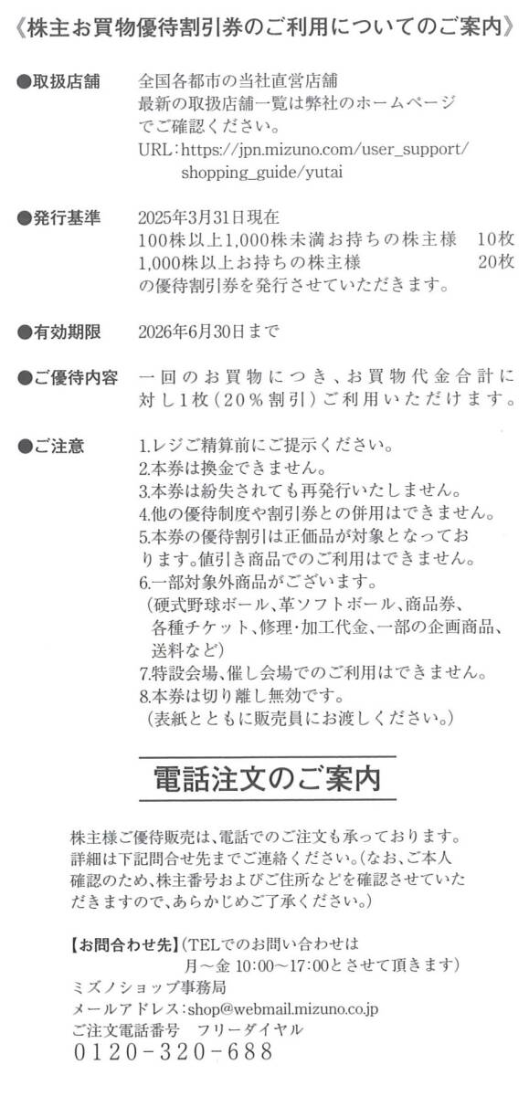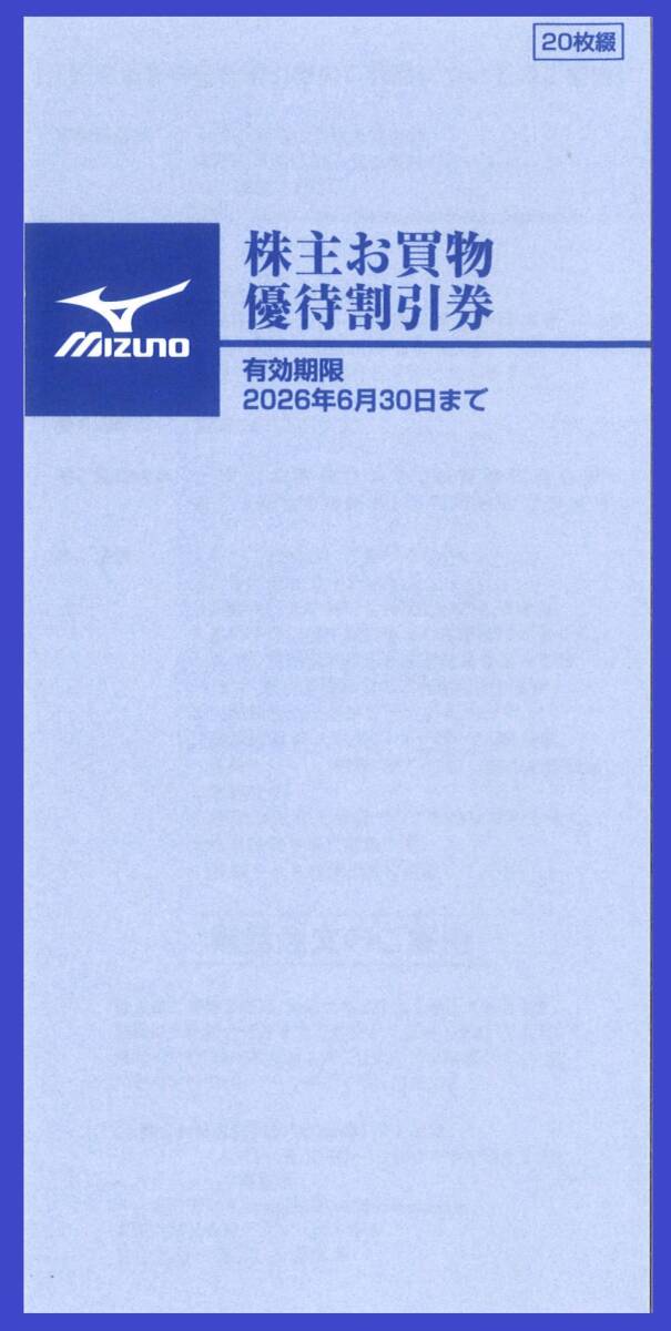 | 商品名稱 : | 「ミズノ(mizuno) 株主優待」 お買物優待20%割引券 20枚綴り【1冊】 有効期限2026年6月30日 |