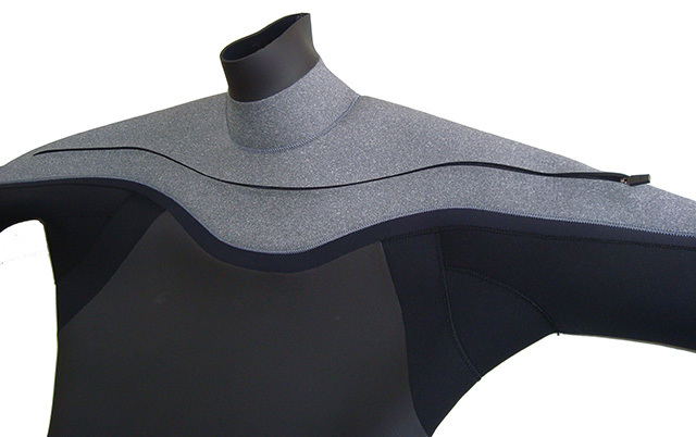 画像5枚目のハイネックになっているラバー部分(約5、5cm)をインナーネックの内側に折り込みます。 折り込んだハイネック部分が首と密着し、首を傾けても隙間があきにくい構造で、水の浸入を最小限に抑えます。 ルーズタイプは脱ぎやすい !! 通常のNO-ZIPタイプのウェットと同様に肩から脱ぎますが、脇、腕が緩く、通常のウェットよりも脱ぎやすいです。 動きやすくて水の浸入も少なく暖かく、脱ぎやすい! おすすめのモデルです。 マテリアルは表面にメッシュ加工を施した柔らかなサーフィン専用の「MRラバー」を採用。 裏側の起毛は、カラーや起毛の種類は選べません。