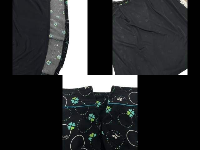クレージュ COURREGES スカートセットアップ サイズ40 M - 黒×グリーン×マルチ レディース クローバー レディーススーツ