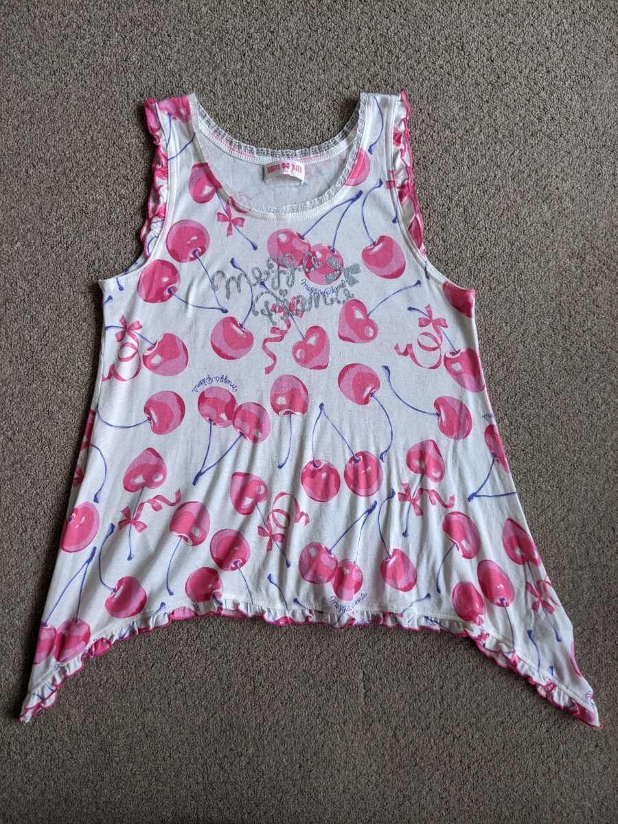 | 商品名稱 : | メゾピアノ 140 インナー付 ノースリーブ トップス チェリー ふりふり リボン キラキラ ブラウジング 涼しい |