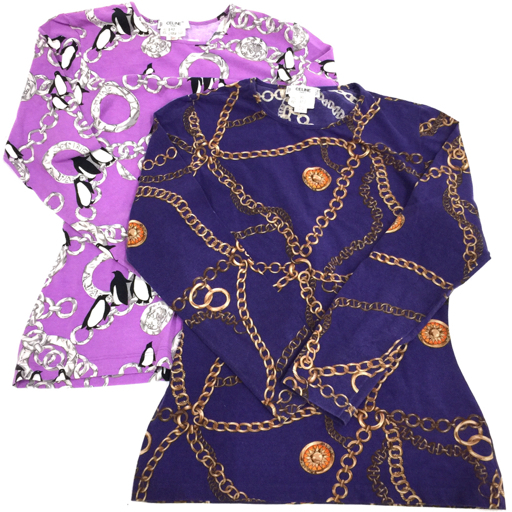 | セリーヌ サイズ 42 長袖 カットソー ペンギン チェーン デザイン パープル系 他 トップス レディース 計2点 セット |