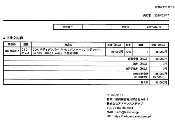 | ★☆La Buono ★COX ボディダンパー (ヤマハ パフォーマンスダンパー) for 595 未使用新品☆★ | ||
