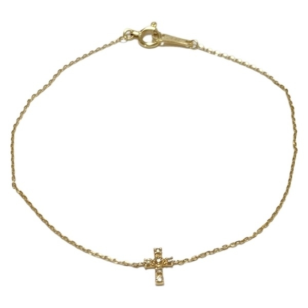 ノジェス NOJESS ブレスレット - K10YG×ダイヤモンド 6Pダイヤ/ダイヤ0.02カラット/クロス(十字架) 美品 アクセサリー(腕)