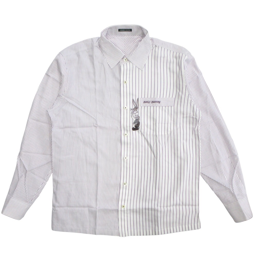商品名稱 : 新品同様 GREEN CLUBS グリーンクラブ ストライプ シャツ カットソー 長袖 バックスバニー 刺繍 サイズ3 白 ホワイト 紫 パープル