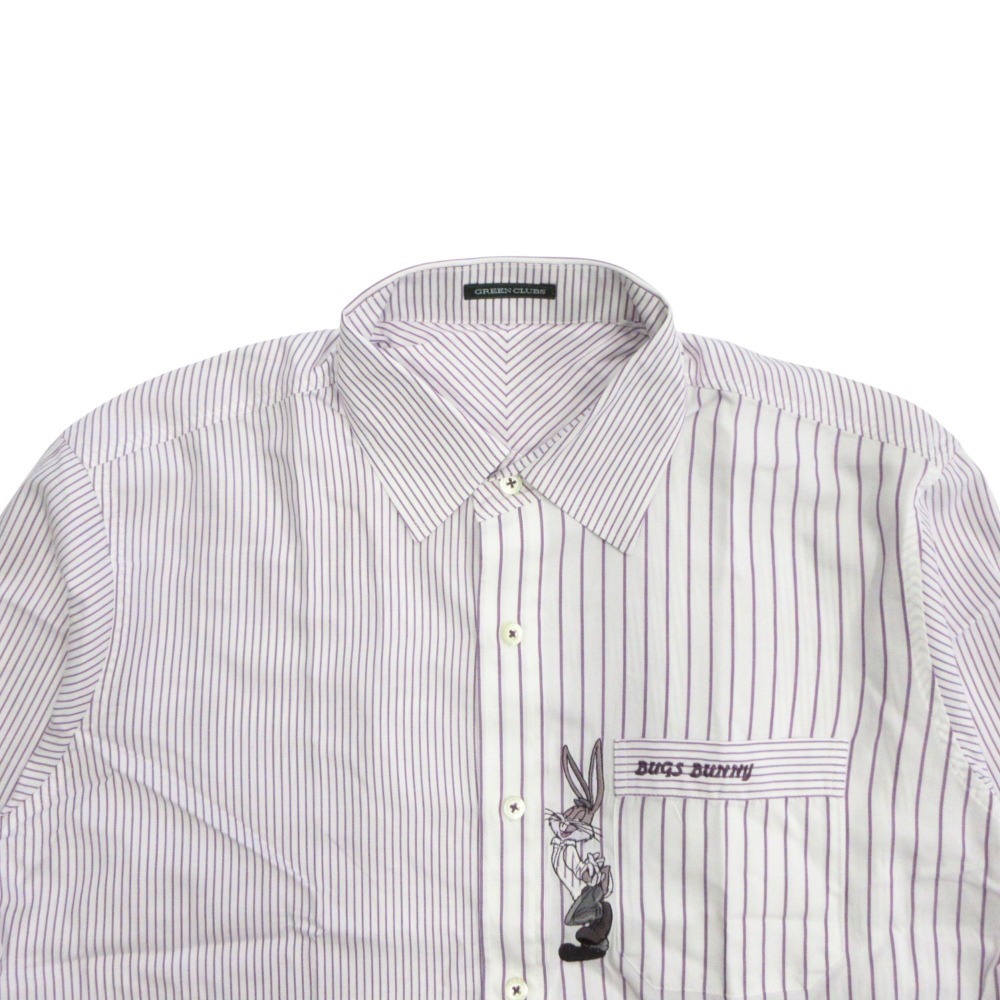 新品同様 GREEN CLUBS グリーンクラブ ストライプ シャツ カットソー 長袖 バックスバニー 刺繍 サイズ3 白 ホワイト 紫 パープル