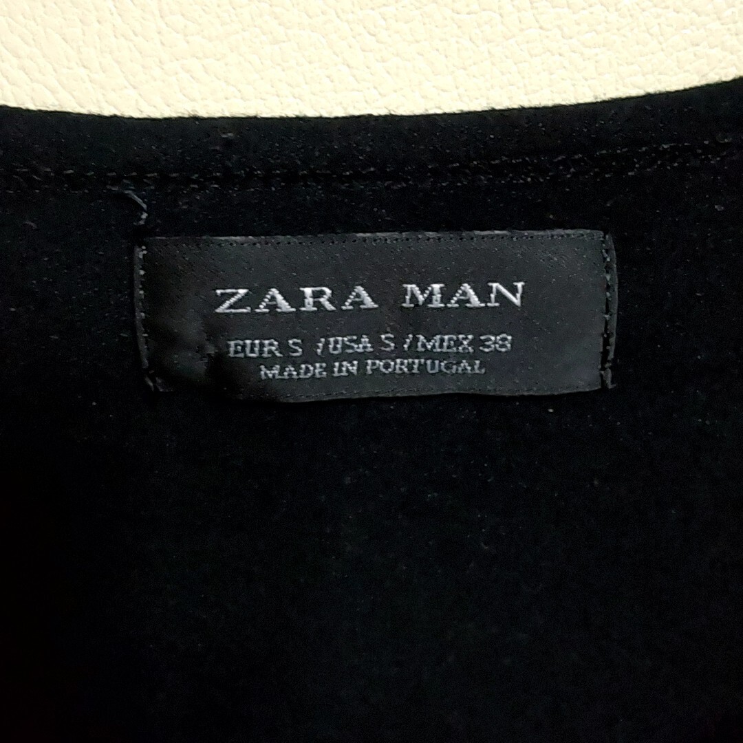 ① ZARA ザラ Tシャツ S 黒色 ブラック 半袖 ヘンリーネック プレーン 無地 カジュアル メンズ