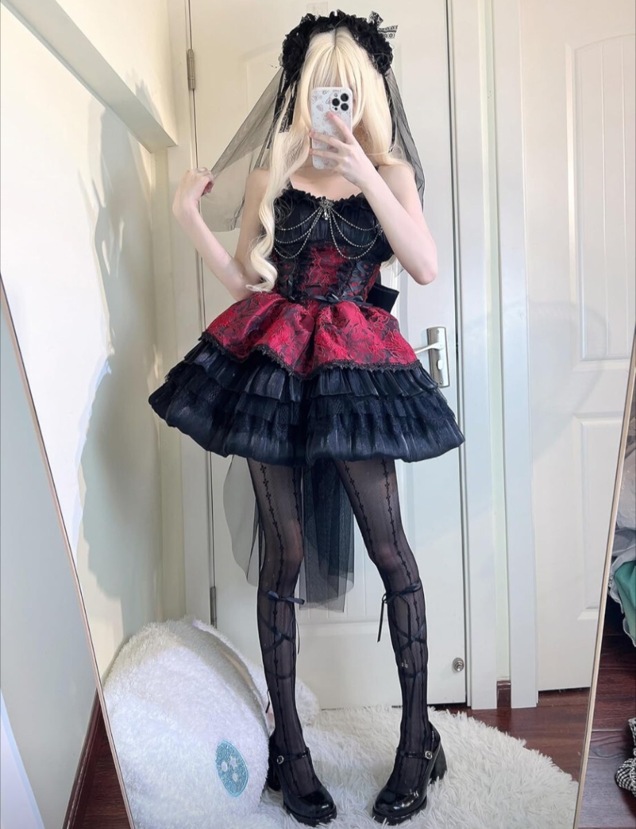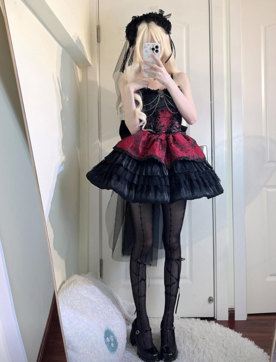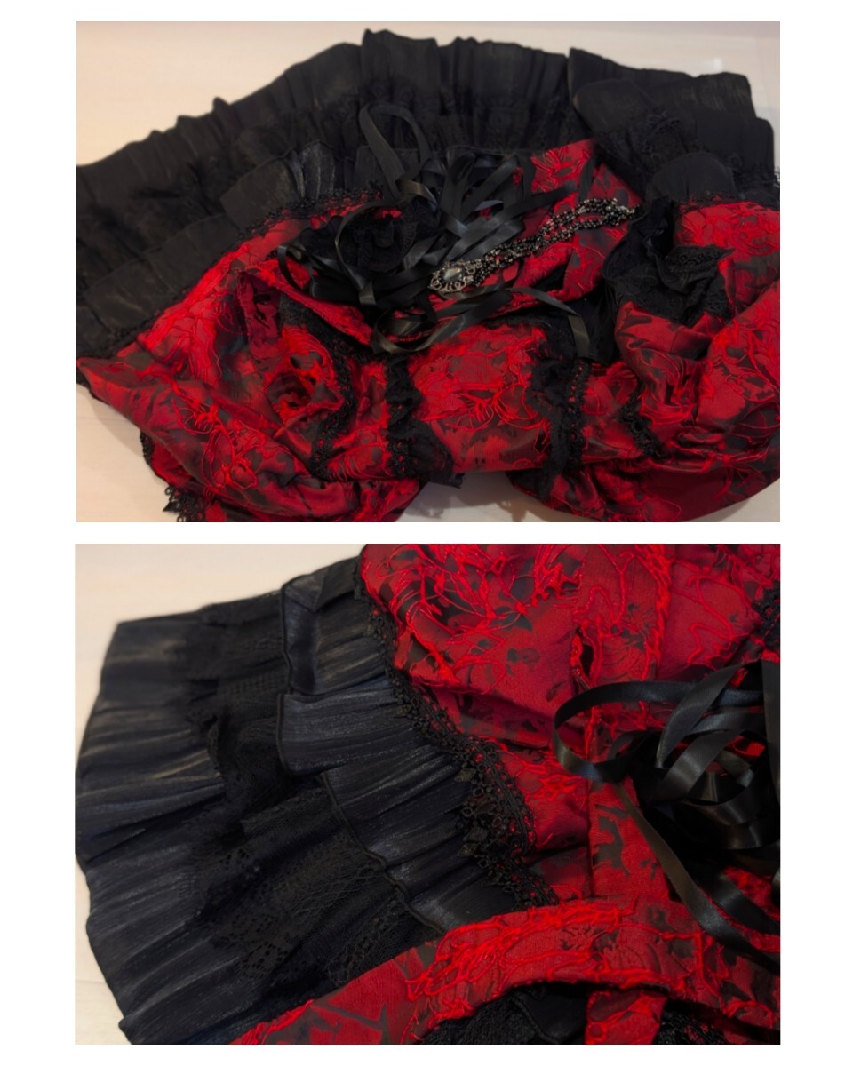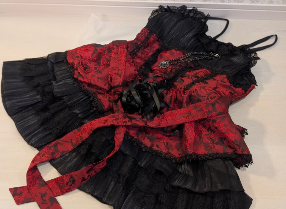 ♪ご覧いただきありがとうございます♪ 新品未使用でございます(*´ー`*) XHSUKADO ゴスロリ コスプレ衣装 2点セット レッド色 Lサイズです☆ 定価5,980円で現在販売中のお品です。 ※画像2・5・6枚目でモデルさんが着ているパフスリーブカーディガンは付いておりません。もともとキャミワンピースとネックレスの2点セットになりますのでご注意くださいませ。 【ブランド】 XHSUKADO 【カラー】 レッド(JSK) ※在庫はこちらのカラーのみになります。 【サイズ】 L 着丈 約80cm バスト 約86〜100cm ※サイズについては、2〜4cm誤差がある場合がございますので、予めご了承ください。 ※在庫はこちらのサイズのみになります。 【スタイル】 ロリータ 【ウエストのスタイル】 ハイウエスト 【お手入れ方法】 手洗いのみ 【素材構成】 ポリエステル 100% 【ご注意】キャミワンピース、ネックレス以外のパフスリーブや小物は商品に含まれません、予めご了承ください。 【デザイン】 花柄の刺繍のデザインで、おしゃれでかわいい雰囲気を与えてくれます。胸元のネクタイもワンポイントです、セクシーな印象を与えてくれます。 【リボン】 フリル・レースをたっぷりと使用した配色切り替えジャンパースカート。女性らしい柔らかな雰囲気もあり、夏を感じさせつつエレガントに魅せることができます。 【幅広く活躍】 コスプレ、学園祭、イベント、文化祭、パーティー、ハロウィン、クリスマスにおすすめです。女子会、デートなど様々なシーンで幅広く活躍します。お洒落で可愛いデザインで、プレゼントとしてもピッタリです。 >